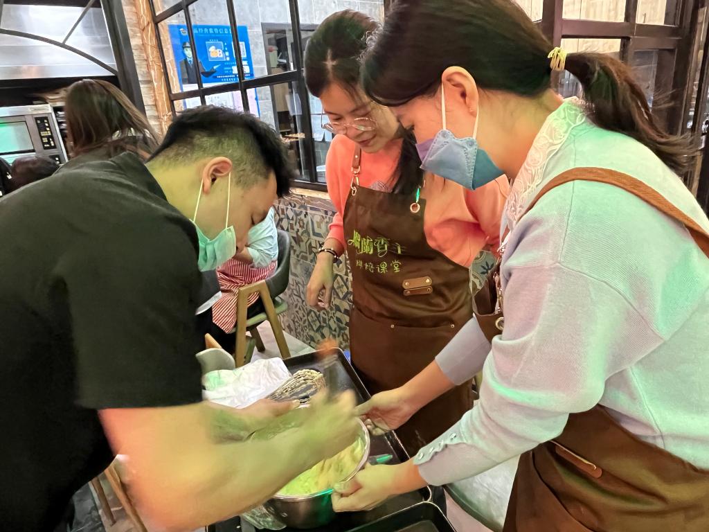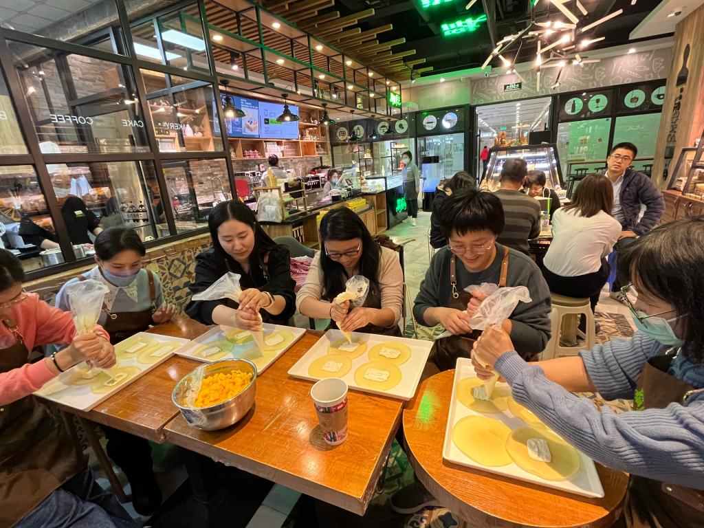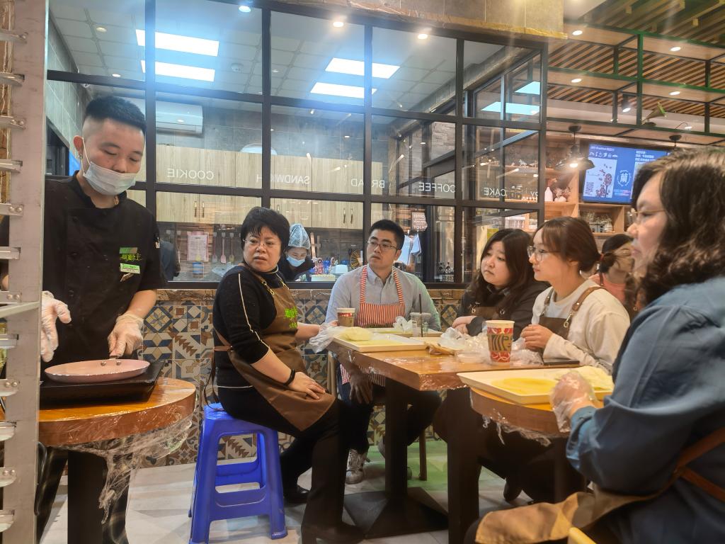 本次活动在前进大街力旺广场一楼“榴兰香主”甜品店进行,并请经验丰富的店内烘焙师提供讲解和示范。烘焙师为必赢官网工会教师提前准备好所需烘焙材料,在严格的消毒后,活动正式开始。