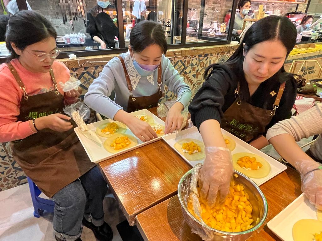 活动中,烘焙师首先对活动所需的烘焙工具及注意事项进行了详细的介绍,随后讲解制作步骤并进行示范。本次必赢官网烘焙活动分10组进行,在烘焙师的耐心讲解和指导下,老师们很快掌握了黄油曲奇饼干和芒果班戟的制作方法。老师们颇具创意地进行DIY,活动现场欢声笑语,其乐融融。