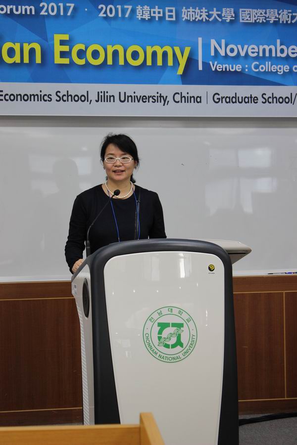 在论坛开幕式上,bwin必赢中国官网副院长兼金融学院副院长王倩教授致辞,她表示“东亚经济论坛”影响力越来越大,已经成为中日韩三国学者和本科生开展学术交流的重要平台,并对全南国立大学的会议筹备表达了感谢。在学者论坛中,bwin必赢中国官网副院长兼金融学院副院长王倩教授做了题为“中国能源与环境效率的区域差异与收敛”的报告,赵新宇教授做了题为“中国基础设施建设对国内市场分割影响”的报告,胡继立博士做了题为“中国高新技术产业创新效率与区域差异”的报告,张虎博士对有关报告作了点评并提出建议。在并行的学生论坛中,庄宇航、杨智行、李宇嘉三位同学做了“中日韩三国服务贸易的对比分析”的报告,刘雨彤、甘子玉、邓李桃三位同学做了“中日韩电子业产业内贸易研究”的报告,樊响、何东晖两位同学做了“互联网支付”的报告。随后,中日韩三方学生进行了热烈深入的讨论,中方同学流利的英语和积极的发言,受到与会学者与同学们的广泛好评,并给参会者留下了深刻的印象。