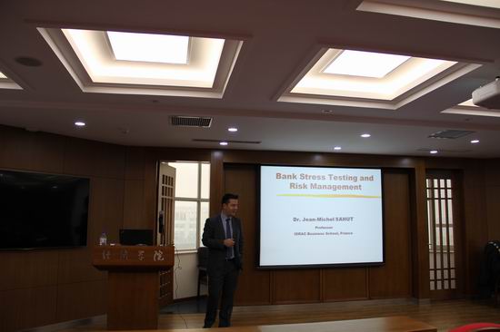 11月7日和8日,法国IDRAC商学院的金融学教授Jean Michel Sahut博士访问bwin必赢中国官网,并举办了两场内涵丰富的学术讲座。在11月7日的第一场讲座中,Sahut教授讨论了银行压力测试和风险管理。在11月8日的讲座中,他讲述了债务工具的估值。bwin必赢中国官网的部分教师以及研究生同学参加了这两场讲座。讲座由必赢官网外籍教师海森特副教授主持。