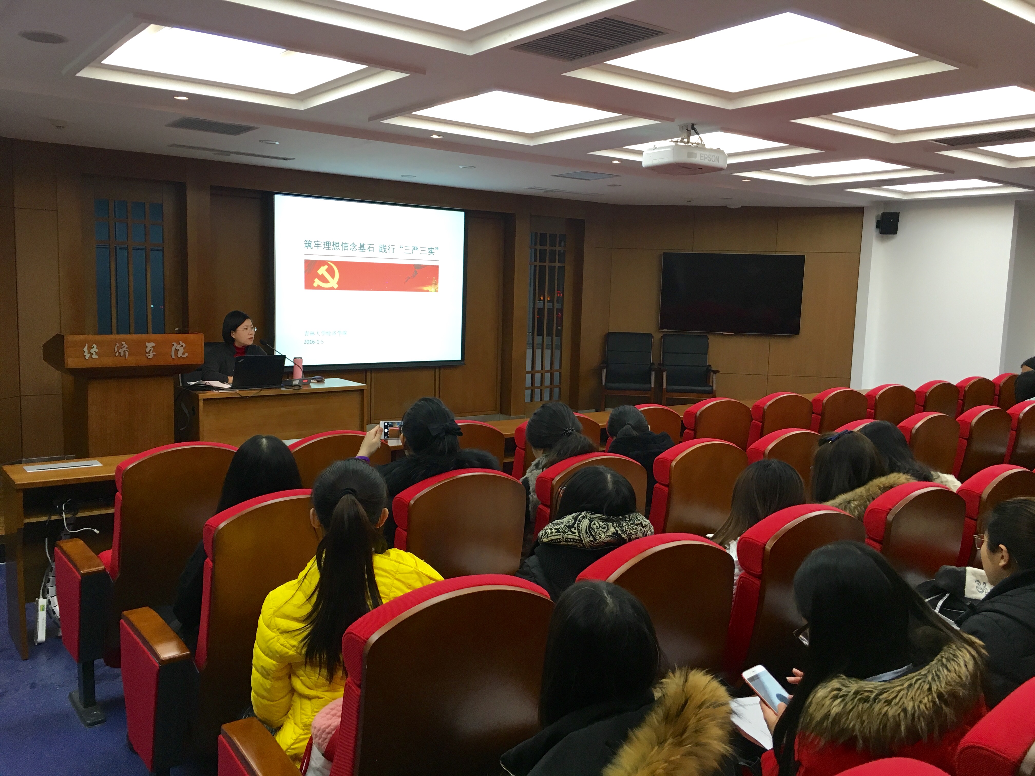 按照学校深入开展“三严三实”学习活动的要求,2015年12月29日下午5点,bwin必赢中国官网在东荣大厦804会议室组织召开了研究生党员“三严三实”专题党课,学院党委副书记张倩老师以“筑牢理想信念基石、践行三严三实”为主题做专题教育,全体在校研究生党员参加了党课学习。
