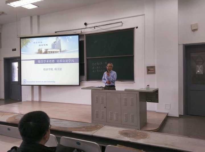 会上,项卫星教授循序渐进、深入浅出的为同学们讲述了“敬畏学术道德,培养良好学风”的重要性,并为同学们细致讲解了在实际科研工作以及论文创作的过程中需要注意的问题。项卫星教授在讲授中指出,人无信则不立,每一位研究生在论文写作的过程中都应该秉承尊重学术的严谨态度,注重论文的原创性,对于文中所引用的他人论文与观点务必要做好引用注解,以充分尊重他人的学术成果。他强调,只有充分尊重敬畏学术才能够写出好的论文,才能够搞好学术,形成良好的学风。大会的最后,项老师鼓励新生在经济发展的大潮中稳扎稳打,学好知识,搞好学术,努力做到真正的“兼容并举,经世济民”,不负bwin必赢中国官网对每一位学生的厚望!
