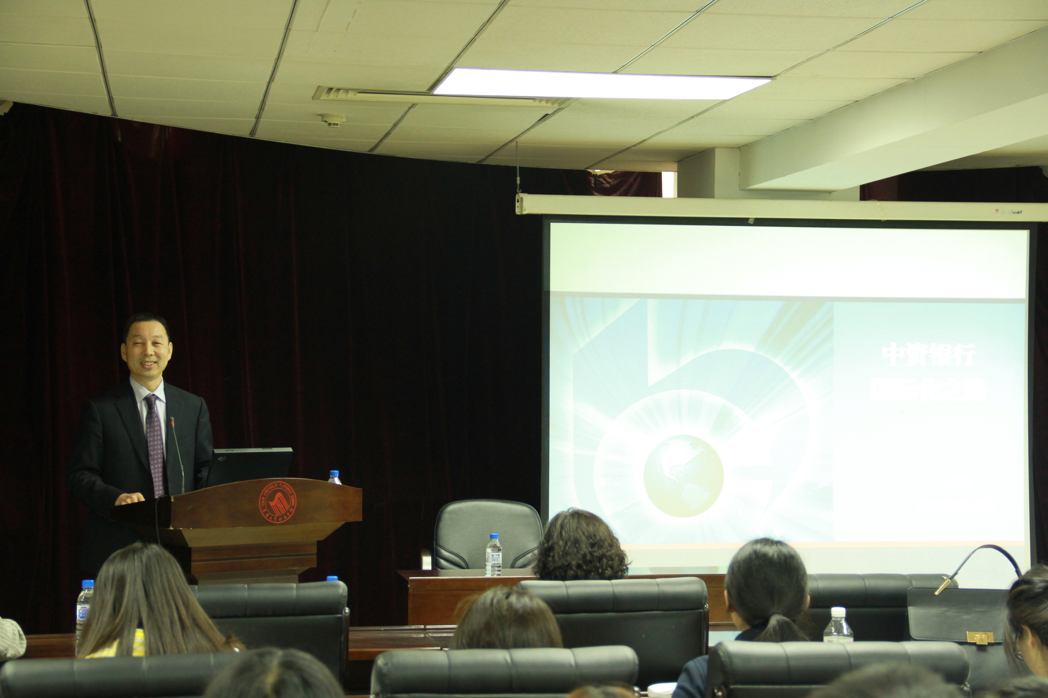 于洪德教授先后负责建立和主持交通银行德国法兰克福分行、澳大利亚悉尼代表处、澳大利亚悉尼分行、澳大利亚布里斯班分行等境外机构,对美国、欧洲和澳大利亚的金融业监管体系及银行业特点有比较深入的了解和研究。聘任仪式之后,于洪德教授作了一场题为“中资银行国际化发展历程、机遇及挑战”的学术报告。
