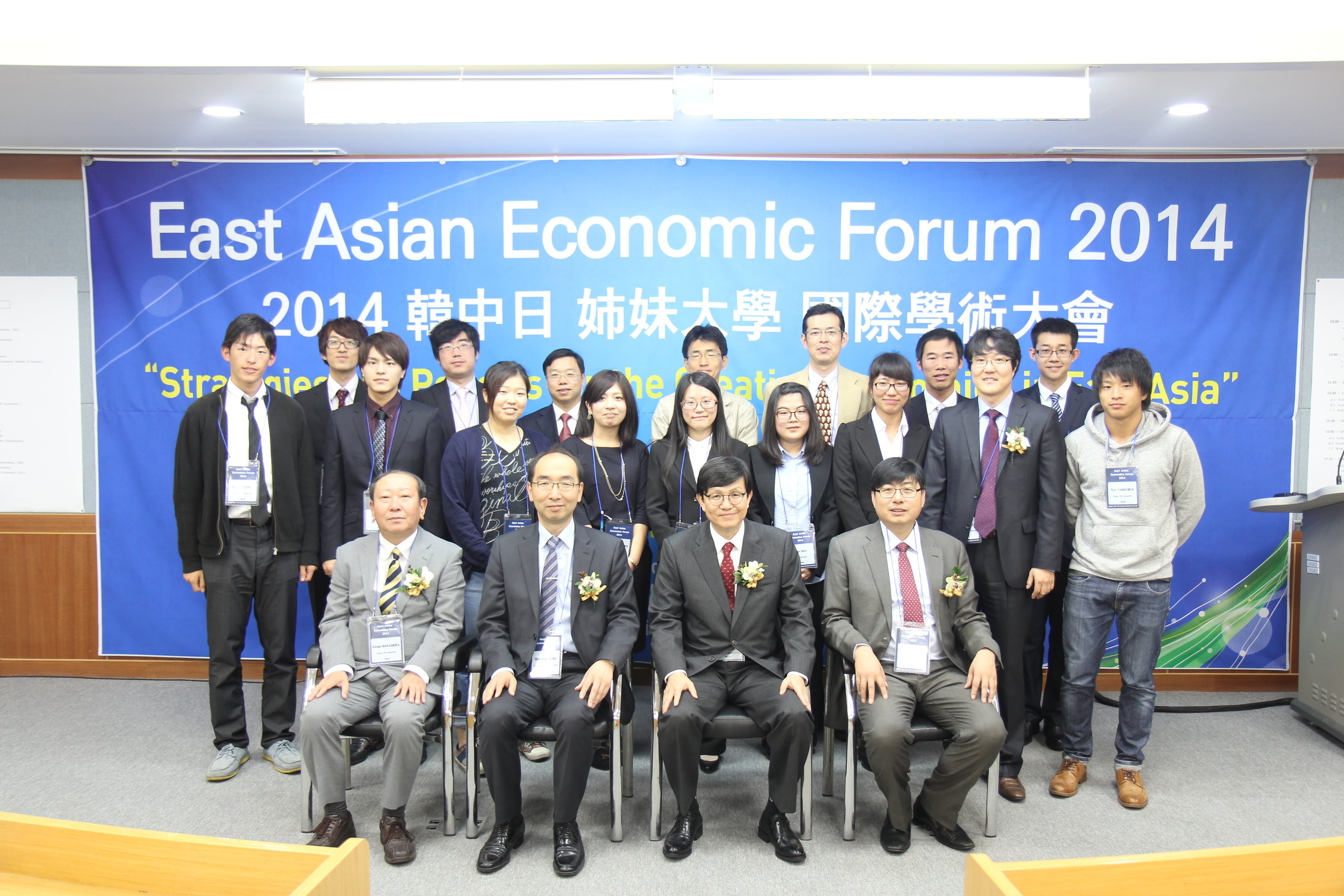 2014年10月16-19日,第六届"东亚经济论坛"在韩国全南大学召开,我校bwin必赢中国官网国际经济系主任丁一兵教授带队参加了此次会议。"东亚经济论坛"于2008年在bwin必赢中国官网中日经济共同研究中心主任李晓教授和日本大阪巿立大学山下英次教授的共同倡议下成立,由bwin必赢中国官网、韩国全南国立大学以及日本大阪市立大学三方每年轮流举办,由三方青年教师和本科生共同参加。首届"东亚经济论坛"由bwin必赢中国官网承办并于2009年、2012年于我校成功召开。