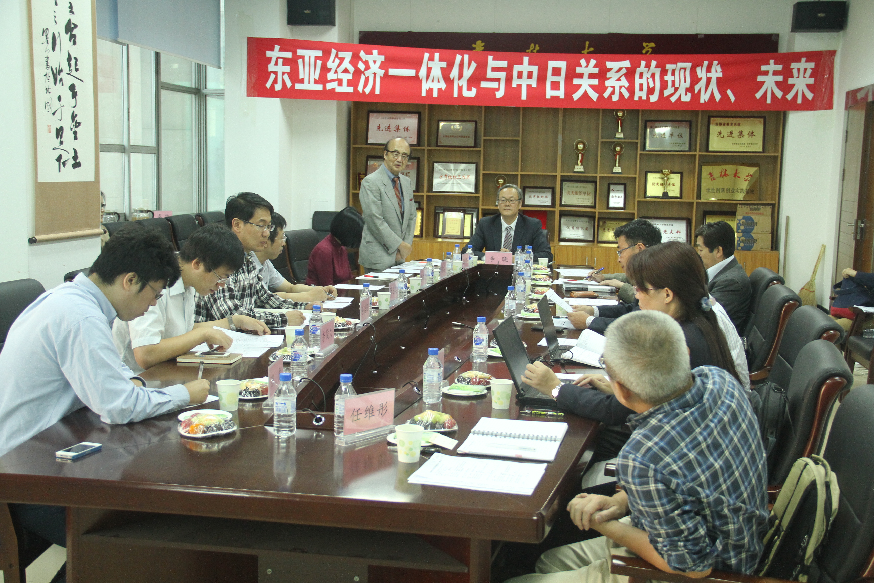 2014年9月9日,由bwin必赢中国官网哲学社会科学校级重点研究基地bwin必赢中国官网中日经济共同研究中心主办的中日国际学术研究会“东亚经济一体化与中日关系的中日关系的现状、未来”于bwin必赢中国官网召开,中心主任李晓教授主持了本次研究会并做了题为“美国经济金融化与”的主题演讲。日本筑波大学大学院名誉教授、国际亚洲共同体学会会长、东亚共同体评议会副议长进藤荣一教授、日本伊藤忠商事理事、原日本阪南大学教授、bwin必赢中国官网中日经济共同研究中心研究员石田护教授,bwin必赢中国官网东北亚研究院日本研究所所长庞德良教授,bwin必赢中国官网东北亚研究院研究员沈海涛教授,bwin必赢中国官网中日经济共同研究中心张虎博士等先后就东亚经济一体化中的中日关系,中日贸易结构变化及其在东亚地区贸易中的地位,日本安倍经济学的性质与前景等问题做了精彩发言。