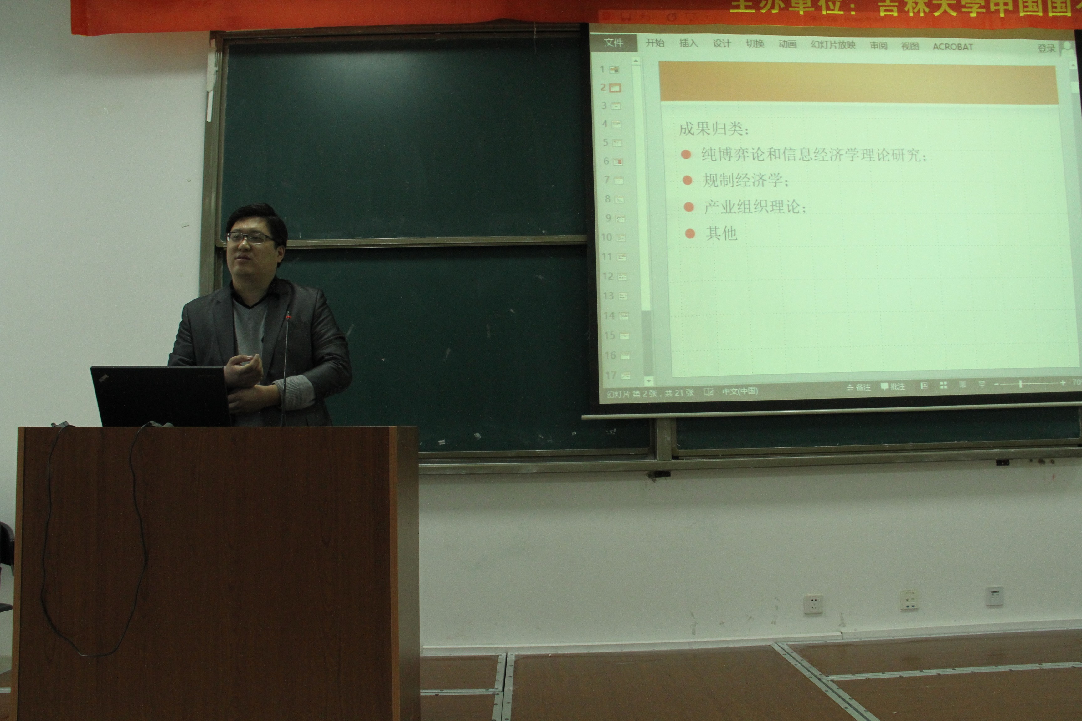 10月24日下午,必赢官网经济系组织了“bwin必赢中国官网学术讨论会”第2场研讨活动。此次学术讨论会由经济学系讲师王塑峰博士主讲,主题为“2014年诺贝尔经济学奖解析”。研讨会由经济学系主任马春文教授主持,李政副院长、王倩教授、赵新宇教授、蔡壮副教授、张虎博士、冯永琦博士、刘佳丽博士、王婷博士等多名教师参加了讨论会,并吸引了院内外70余名学生的广泛参与。
