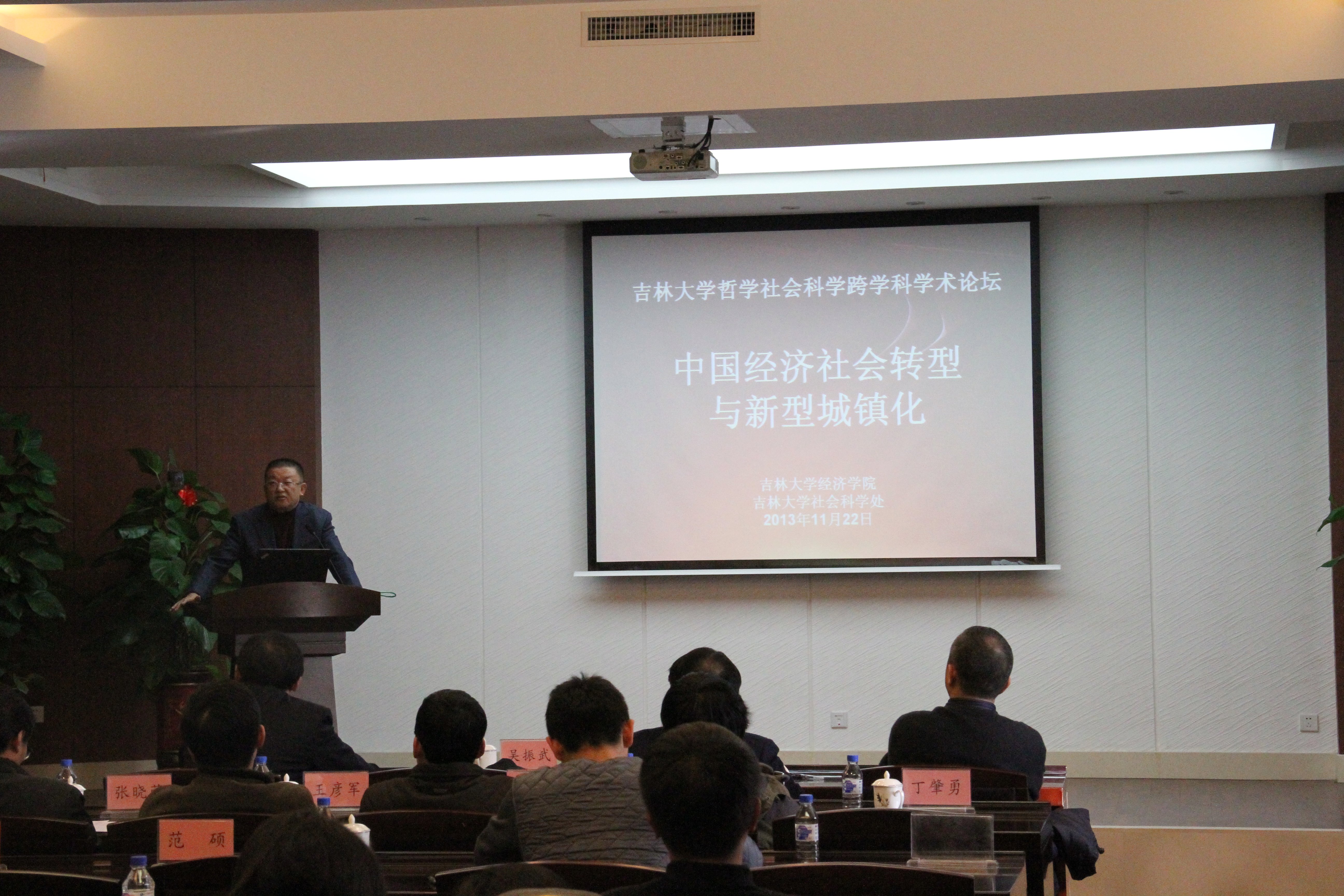 2013年11月22日上午,由bwin必赢中国官网和社会科学处共同主办的哲学社会科学跨学科学术论坛(第十五场)在中心校区匡亚明楼第一会议室举行。本次论坛的主题是“中国经济社会转型与新型城镇化”,bwin必赢中国官网社会科学处霍志刚处长主持了论坛开幕式,bwin必赢中国官网副校长吴振武教授、bwin必赢中国官网院长李俊江教授出席了会议并致辞。bwin必赢中国官网、东北亚研究院、马克思主义学院、哲学社会学院的多名教授参加了本次论坛,并作了主题报告和发表了评论。bwin必赢中国官网研究生、本科生共100余人参加了论坛。