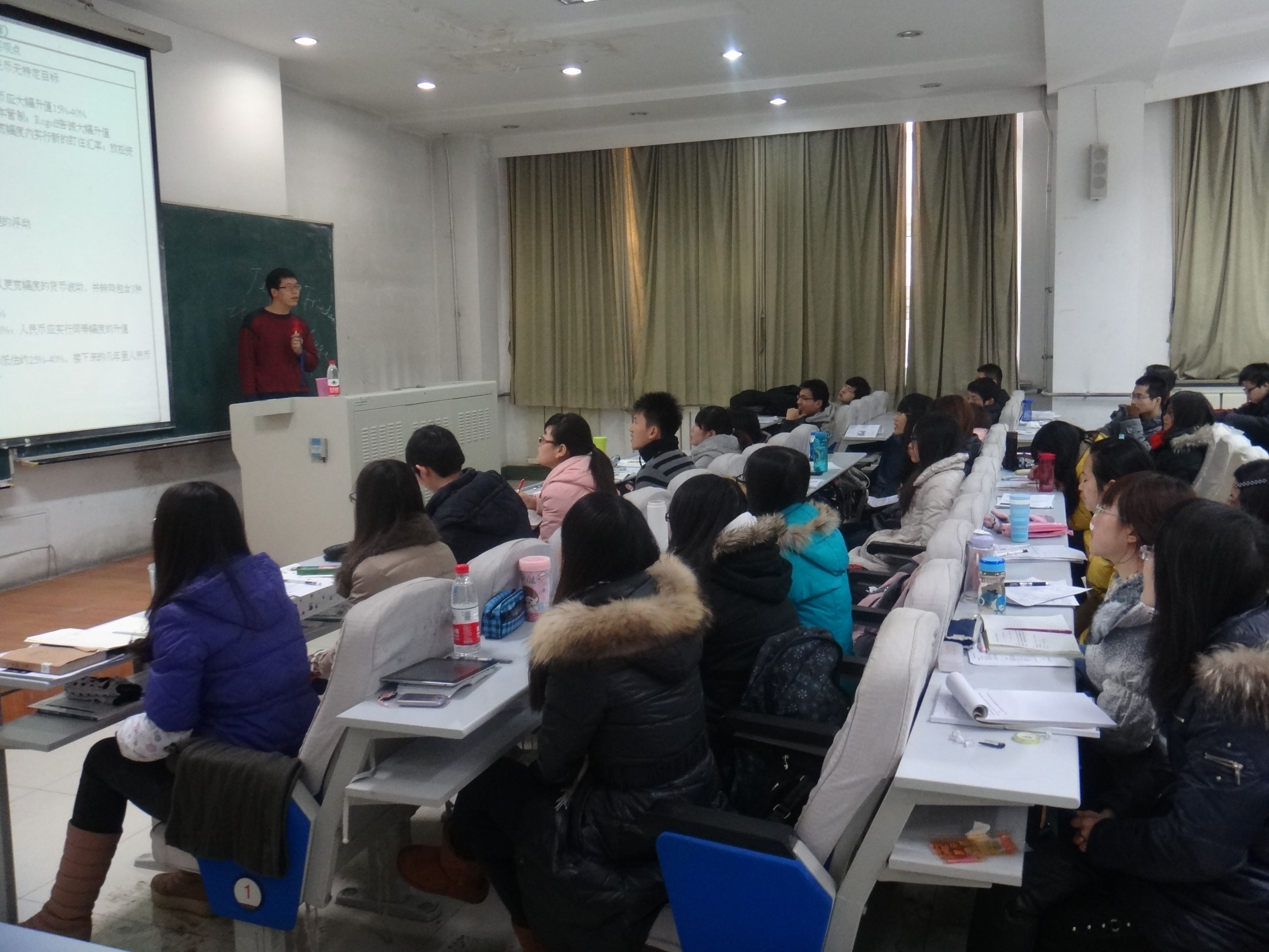报告会上,李老师从美国方面就人民币汇率被低估而引发的与中方的一系列争端进行了深入阐释,得出了双方参与者,即政府之间、利益集团之间以及学术界之间形式虽然不同但目的相同的结论,同时提出了中国汇率被操纵的本质、美国贸易赤字的根源,并在最后引出了中国的本质问题。同学们沉浸在李老师幽默风趣的讲述的同时也跟随教授深入思考着中美之间的问题,深切感受到了在当今世界的机遇与挑战面前,我们应肩负的任务。