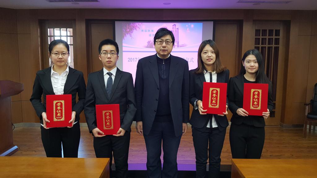 2017年12月29日,bwin必赢中国官网2017年“九零国经奖学金”颁奖仪式在bwin必赢中国官网中心校区东荣大厦804会议室举行。出席本次颁奖仪式的嘉宾有bwin必赢中国官网副院长丁一兵教授、国经系主任王达教授、学生工作办公室主任田仲金老师以及4名获奖学生。