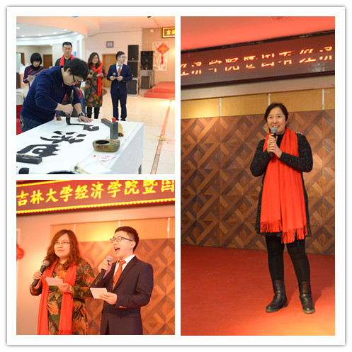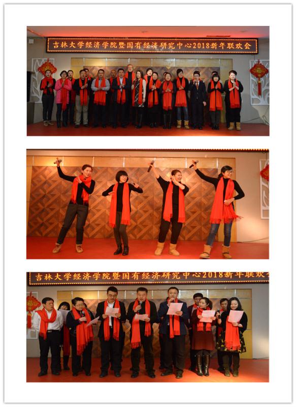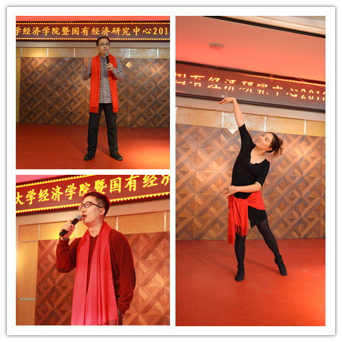 热 热烈的掌声和祝福声中,2018年新年联欢会正式拉开帷幕。联欢会由廖红伟、张磊、刘柏岩三位老师主持。学院各系、国有经济研究中心及行政管理团队都表演了精彩纷呈的节目,有范立东老师演唱的《等待》、朴卿华老师演唱的《桔梗谣》、王达老师演唱的《珍惜》,行政团队的歌伴舞《最炫小苹果》、合唱《团结就是力量》,还有宋洋老师的舞蹈《芳华》、周渤老师的书法表演不仅展示了教职工的才华,更展现了经济学人的精神风貌。张继业老师演唱的《青藏高原》赢得了全场一浪高过一浪的掌声,李晓院长即兴演唱的一曲《往日时光》将联欢会推向高潮!晚会中穿插的游戏环节让大家在轻松一刻的同时,也感受到团队合作的力量。晚会在经济学系全体教师《明天会更好》的歌声中落下帷幕!最后,党委书记陈密发表新年寄语,祝愿全体教师新年快乐,阖家幸福!祝愿2018年bwin必赢中国官网团结一心、凝心聚力,在“双一流”建设的道路上奋发前进!