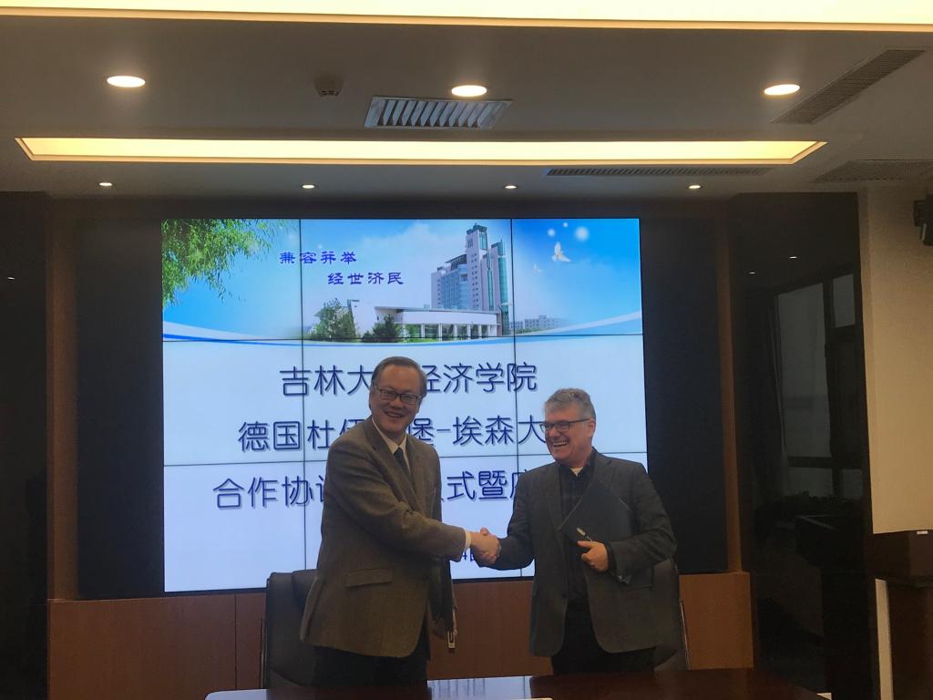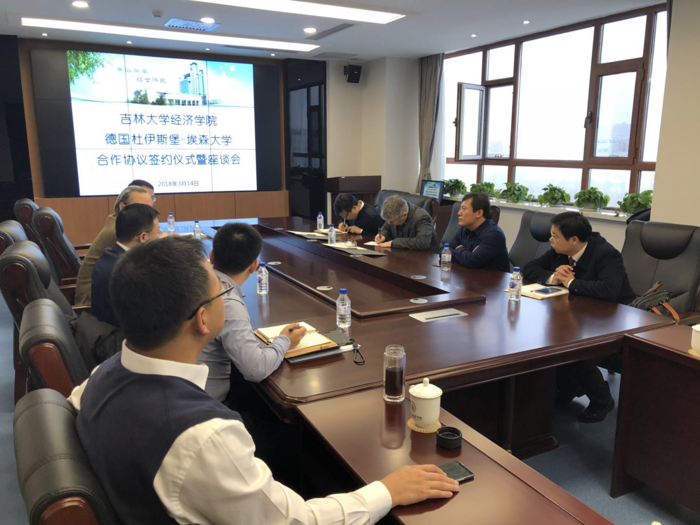 3月14日上午,bwin必赢中国官网与德国杜伊斯堡-埃森大学东亚研究所的合作协议在东荣大厦bwin必赢中国官网会议室正式签署,bwin必赢中国官网院长、“一带一路”研究中心主任李晓教授与德国杜伊斯堡-埃森大学东亚研究所所长马库斯·陶伯(Markus Taube)教授分别代表双方在协议签字。签约仪式由bwin必赢中国官网副院长丁一兵教授主持,bwin必赢中国官网副院长史本叶教授、中以创新创业合作研究中心主任李政教授、经济学系主任赵新宇教授、金融系主任周佰成教授、金融系于震教授、王皓老师和研究生办公室高杉老师参加了签约仪式。