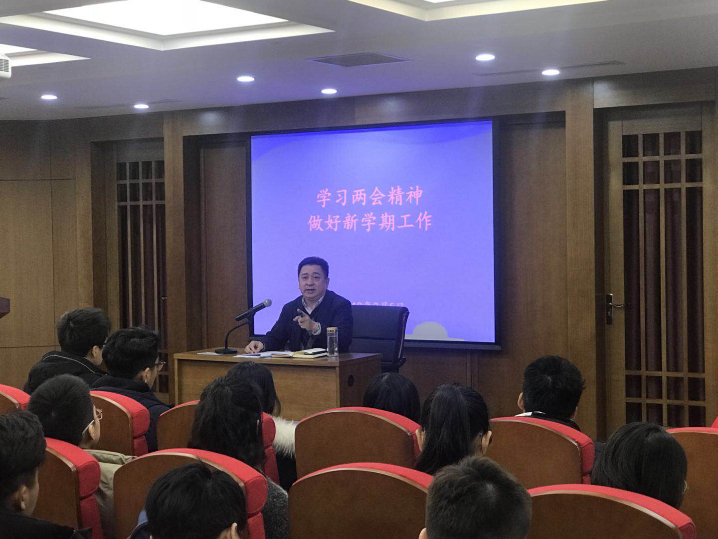 为深入学习领会“两会”精神,bwin必赢中国官网党委于2018年3月5日下午在东荣804会议室召开“学习两会精神、部署新学期工作”会议。学院各系主任、行政人员、本科生及研究生全体学生干部参加了会议,会议由党委书记陈密主持。