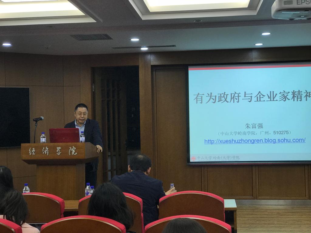 报告结束后,同学们积极地向朱教授提问,朱教授给予了充实详尽的解答。李政教授最后对报告做了总结,他讲到,政府功能与企业家才能发挥以及技术和产业的创新之间并不是矛盾而是互补,只有实现有为政府和有效市场的互补,才能有效地激发出企业家精神,才能合理地将企业家资源配置到生产性领域,进而最大限度地促进社会经济的持续增长;而要实现市场机制和政府功能的互补,关键在于制度规则的建设和伦理的塑造,以建立起自律性市场和自律性政府。最后,李政教授再次肯定了朱教授的学术成果并对其的莅临表示感谢。同学们也纷纷表示此次报告令其受益匪浅,学术报告在同学们与教授的讨论中圆满结束。
