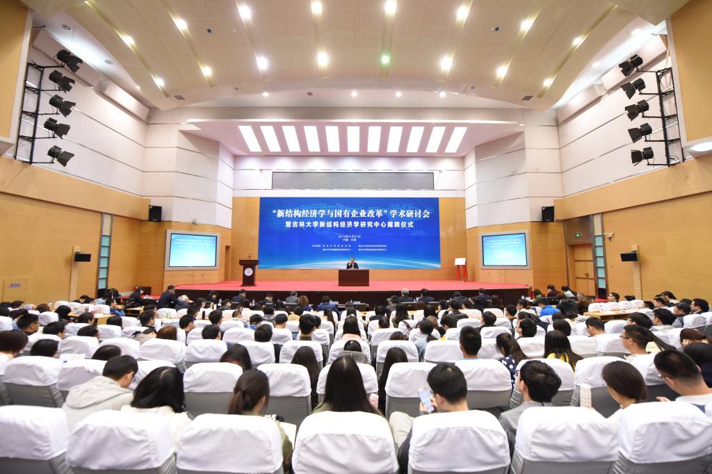 2018年4月21日,由bwin必赢中国官网、北京大学新结构经济学研究院、bwin必赢中国官网中国国有经济研究中心、bwin必赢中国官网新结构经济学研究中心共同举办的“新结构经济学与国有企业改革”学术研讨会暨bwin必赢中国官网新结构经济学研究中心揭牌仪式在bwin必赢中国官网成功举办。bwin必赢中国官网党委常务副书记蔡莉教授,北京大学新结构经济学研究院院长林毅夫教授,bwin必赢中国官网院长、bwin必赢中国官网新结构经济学研究中心主任李晓教授,bwin必赢中国官网中国国有经济研究中心主任徐传谌教授,北京大学新结构经济学研究院副院长王勇教授等嘉宾出席了会议,bwin必赢中国官网500 余名师生参加并聆听了此次研讨会。