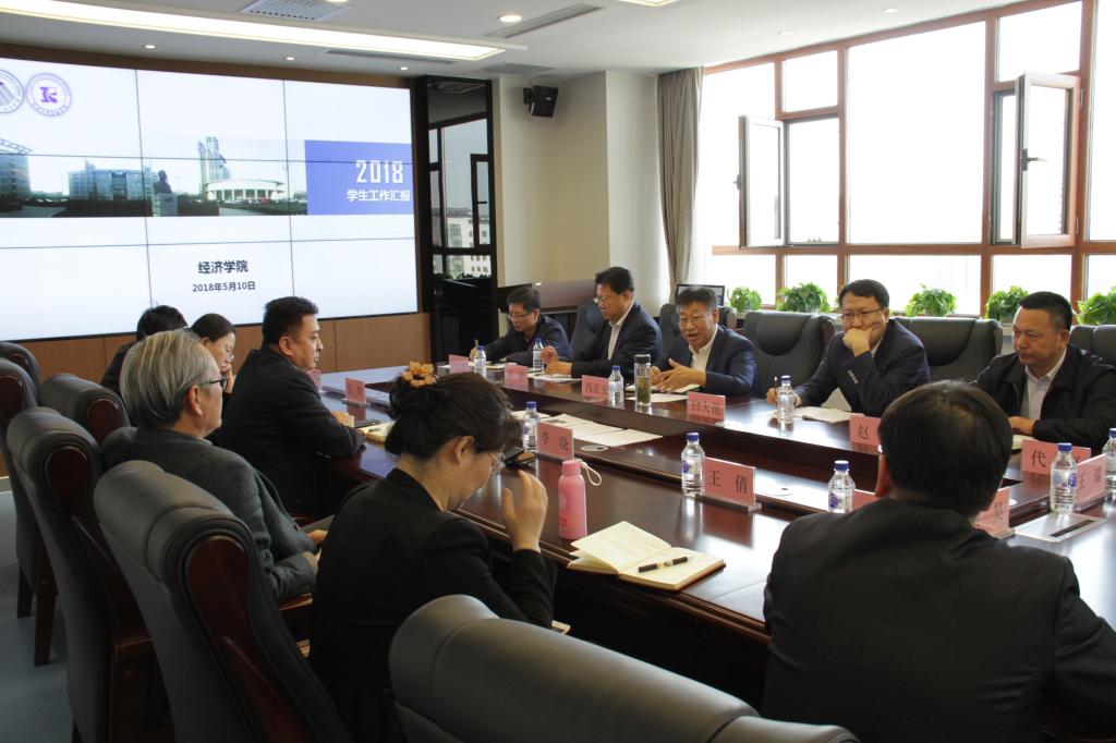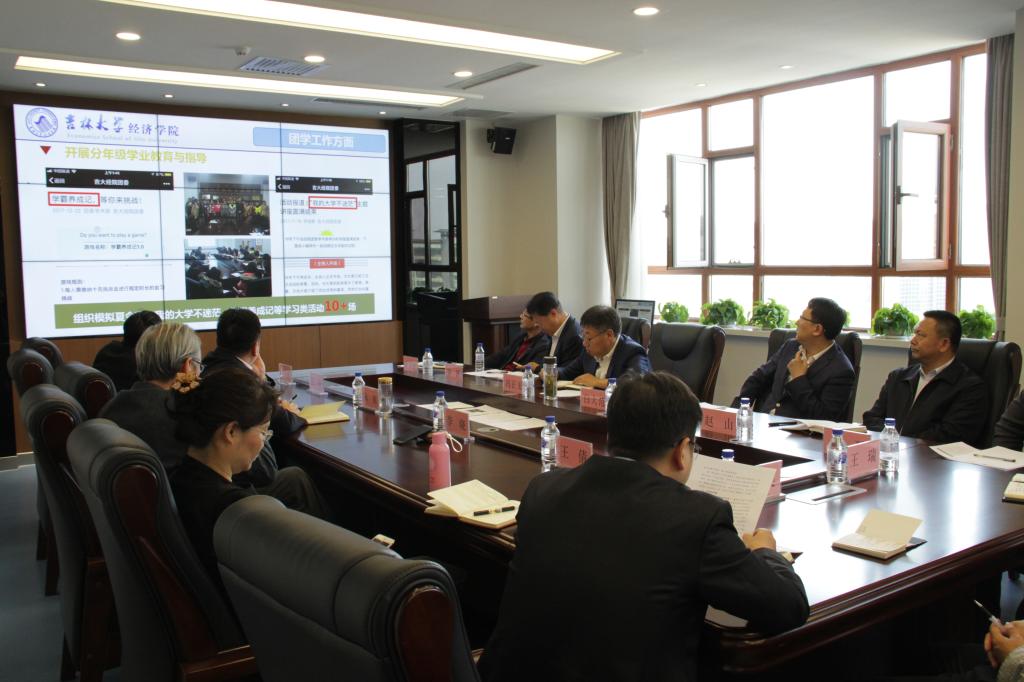 首先,学院主管本科生工作副书记兼副院长赵勇围绕bwin必赢中国官网学生工作基本情况、部分重点工作开展情况以及目前存在的问题和不足三方面进行了汇报。随后,bwin必赢中国官网党委书记陈密结合学院实际提出了学院在辅导员队伍建设和学生培养中面临的困难和挑战。bwin必赢中国官网院长李晓就如何提升大学生素质方面提出了几点意见和建议。接着,经济学院主管研究生副书记张倩从学院研究生基本情况、思想政治建设工作开展情况以及存在困难和问题三个方面进行了汇报。主管本科生教学工作副院长王倩和主管研究生培养工作副院长丁一兵分别围绕自己分管的工作介绍了学院相关工作开展情况。会上,与会人员畅所欲言,就目前涉及学生工作的多方面问题进行了积极有效的交流和探讨。