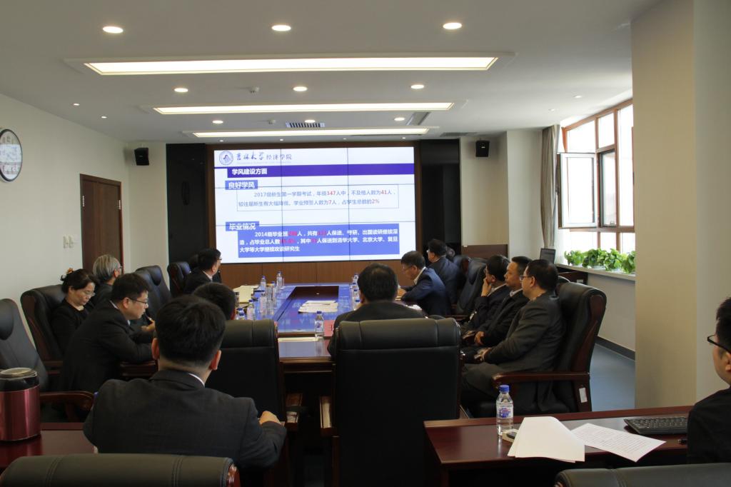 2018年5月10日下午,校党委副书记冯正玉,党委办公室、学生工作部、研究生工作部、教务处、校团委、学生就业创业指导与服务中心、学生心理健康指导中心等单位相关负责同志一行9人来到bwin必赢中国官网,开展学生工作专项调研。bwin必赢中国官网党委书记陈密,院长李晓以及分管本科生教学、本科生管理、研究生教学、研究生管理的负责人,学生工作办公室、研究生办公室的工作人员和学生代表参与了此次调研。