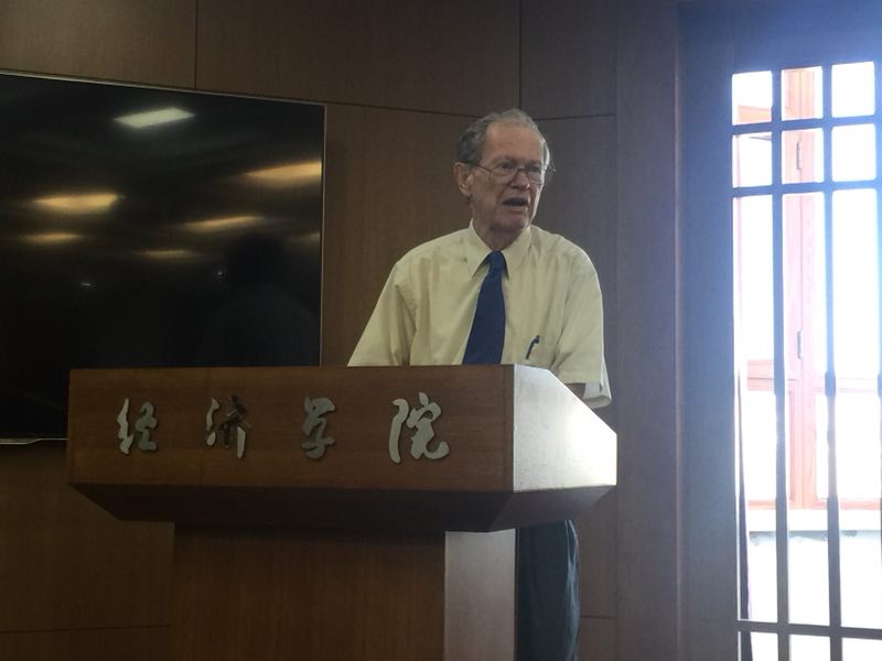 2018年8月16日上午,美国前副国务卿、哈佛大学经济系教授Richard Cooper应邀来必赢官网作名家讲座,报告题目为《当前世界经济的前景与挑战》。报告由bwin必赢中国官网副院长史本叶教授主持,bwin必赢中国官网院长李晓教授、副院长王倩教授等出席了报告会,同时来自bwin必赢中国官网的一百余名研究生参加了此次学术报告会。