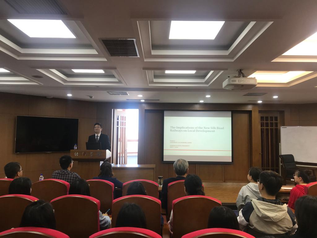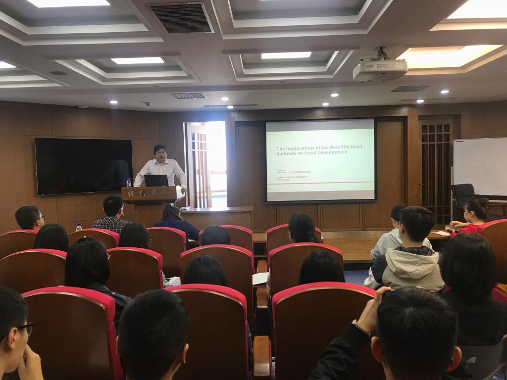 9月7日,德国杜伊斯堡-埃森大学东亚研究所李远教授应邀来必赢官网作了题为“The Implications of the New Silk Road Railways on Local Development”的学术报告。报告由bwin必赢中国官网副院长丁一兵教授主持,bwin必赢中国官网院长李晓教授、副院长史本叶教授出席了此次报告会,bwin必赢中国官网部分教师和80余名研究生参加了本次报告会。