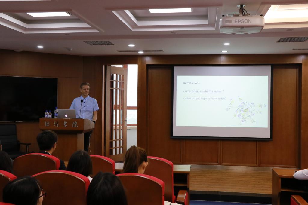 在最后的问答交流环节,同学们积极提问,Peter Gloor教授对大家提出的问题进行了细致详尽的解答。最后,宋洋副教授对本次报告做了总结。在现场师生热烈的掌声中,本次学术报告会圆满结束。