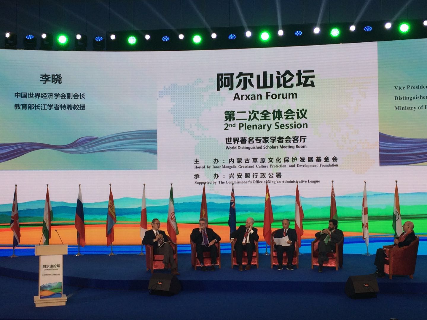 2018年9月16-17日,由bwin必赢中国官网“一带一路”研究中心主任、bwin必赢中国官网院长李晓教授作为主要发起人之一,内蒙古草原文化保护发展基金会主办,兴安盟行政公署承办的2018阿尔山论坛,在内蒙古自治区兴安盟阿尔山市国际文化交流中心盛大召开。该论坛历时3年时间筹备,是落实bwin必赢中国官网与内蒙古自治区政府战略合作协议的一部分,是一个非官方、非盈利、定期、定址、开放性的国际会议组织,以东北亚地区和平与发展,各国间平等、互惠、合作与共赢为主旨。