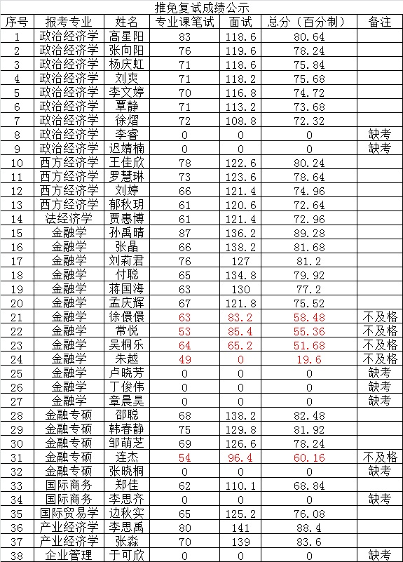1、2018届推免生复试总成绩排名及拟录取名单请详见附件。公示期:9月27日-30日,如有异议,请本人持身份证到东荣805室进行复议。