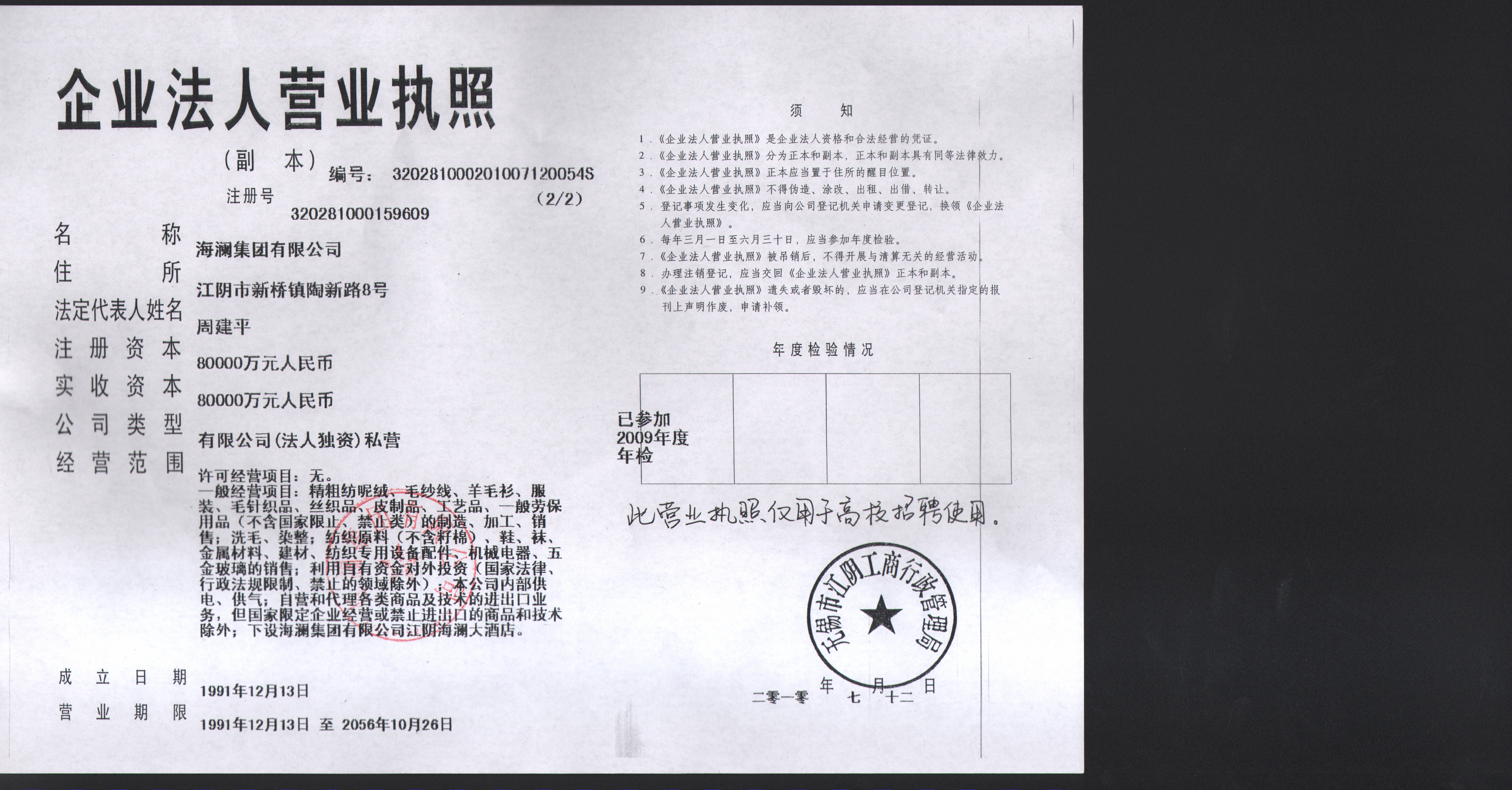 海澜集团有限公司创建于1988年,位于长江三角洲的江苏省江阴市,是一家综合性大型企业,2012年完成营业总收入380多亿元,连年入选“中国企业五百强”。
