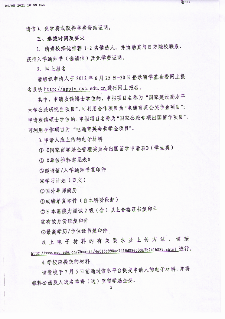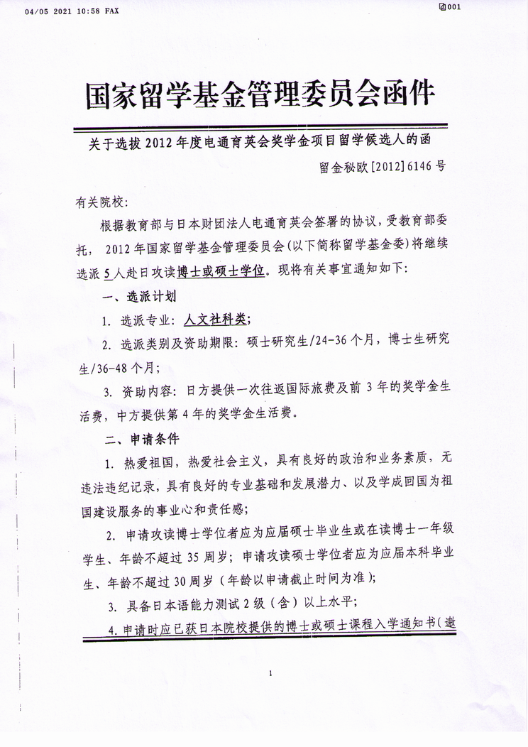 现将国家留学基金委“关于选拔2012年度电通育英会奖学金项目留学候选人的函”转发,请符合要求的同学积极申报。