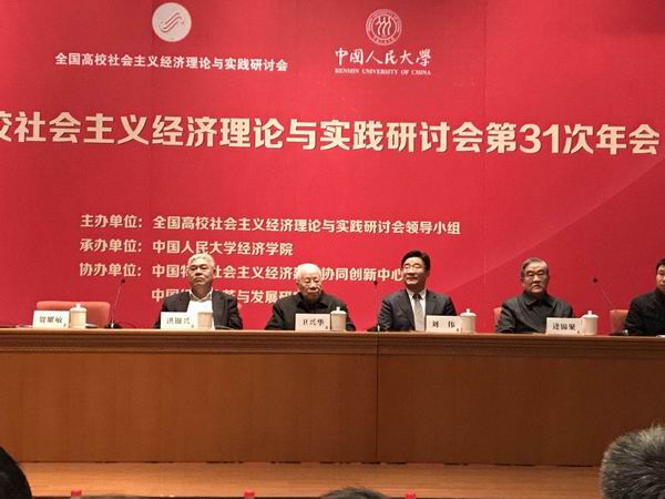 11月4-5日,全国高校社会主义经济理论与实践研讨会第31次年会在中国人民大学召开。本次会议是在党的十九大胜利闭幕之际召开的学术盛会,来自全国70多所高校的200多位学者以及部分媒体单位参加了会议,我国著名经济学家卫兴华教授、刘伟教授、洪银兴教授、黄泰岩教授出席会议。bwin必赢中国官网院长李晓教授和必赢官网的纪玉山教授、李政教授、魏益华教授、蔡壮副教授、范欣老师以及多名博士研究生参加了此次学术研讨会。