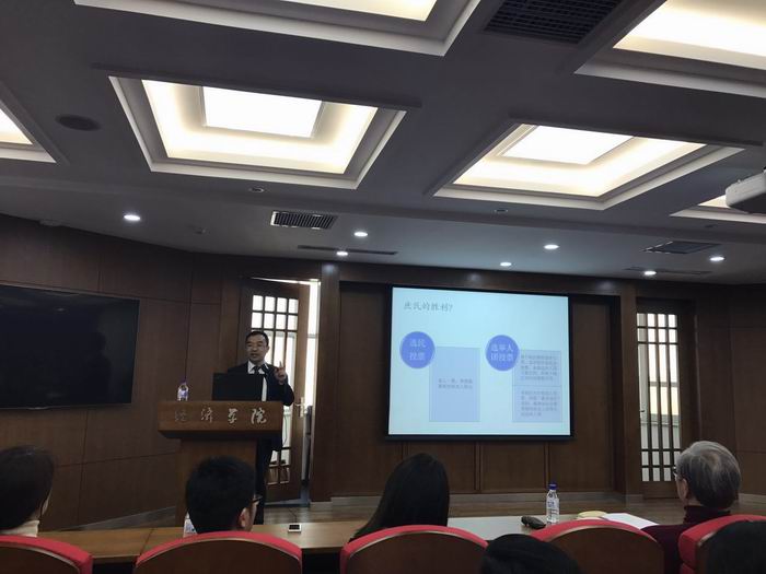 2月27日下午,北京大学汇丰商学院经济学教授、海上丝路研究院执行院长何帆教授受邀来必赢官网作主题为“特朗普上任对中美经济关系的影响”的学术报告。报告会由教育部李晓教授主持,bwin必赢中国官网李俊江教授、项卫星教授及来自学院各系的老师出席了此次报告会,bwin必赢中国官网近百名本科生、研究生同学到场聆听了讲座。