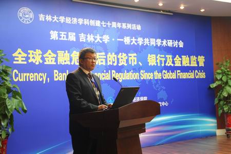 开幕式由bwin必赢中国官网副院长史本叶副教授主持,bwin必赢中国官网院长李俊江教授和一桥大学小川英治教授分别在开幕式上致辞。此次研讨会分三个部分进行,分别由李俊江教授、小川英治教授和丁一兵教授主持。第一部分,首先由一桥大学小川英治教授做了题为“Inertia of the US Dollar as a Key Currency through the Two Crises”的主旨演进,深入分析了两次金融危机中美元作为基础货币的惯性问题,通过实证分析考察了全球危机和欧元区危机是否对美元基础货币地位产生影响,并提出应对流动性危机的可行性建议,随后bwin必赢中国官网丁一兵教授就全球金融危机后人民币国际化的推进、中国的“一带一路”倡议以及人民币国际化与“一带一路”面临的问题做了题为“货币惯性、基本面因素与货币国际化:一个特殊的动态面板数据分析”报告。第二部分,首先由一桥大学花崎正晴教授做了“从美国爆发的全球金融危机和金融管制”为主题的报告,着重讲解了在证券市场规模扩大、影子银行体系的发展、信用违约互换规模膨胀、不断放松金融管制和房地产泡沫及其崩溃的背景下金融管制的实施现状及未来发展趋势,接着bwin必赢中国官网王倩教授和一桥大学中村恒准教授分别做了“金融危机后中国的国有银行更有效率吗?”和“道德风险的价值评价——基于强形式的定式化”的主题报告,分别就国有银行效率的测度方法、金融危机形势下金融机构风险防控问题特别是风险防控中的道德风险价值评估问题进行了阐述。第三部分,一桥大学高冈浩一郎教授“流动性不足和信用风险的分析——对流动性违约风险结构性分析的考察”的报告对流动性和信用风险问题做了更详细的解读,bwin必赢中国官网周佰成教授为大家讲解了他的一篇题为“财务业绩约束高管期权定价及其激励作用研究”的论文,提出在宏微观经济形势不同时期选择不同的期权定价模型来进行主观价值、客观价值和公允价值的全面细致的测度,得到不同定价公式,具有很高的理论与应用价值,然后,bwin必赢中国官网王达副教授的“国际金融监管改革的进展与东亚国家的参与”主题报告提出了LEI体系改革,进而改变国际金融监管的格局和态势的思路,同样得到了日方专家的称赞。会议闭幕式上,一桥大学小川英治教授、bwin必赢中国官网院长李俊江教授分别对本次论坛进行了总结和点评,本次论坛在与会成员的掌声中圆满闭幕。