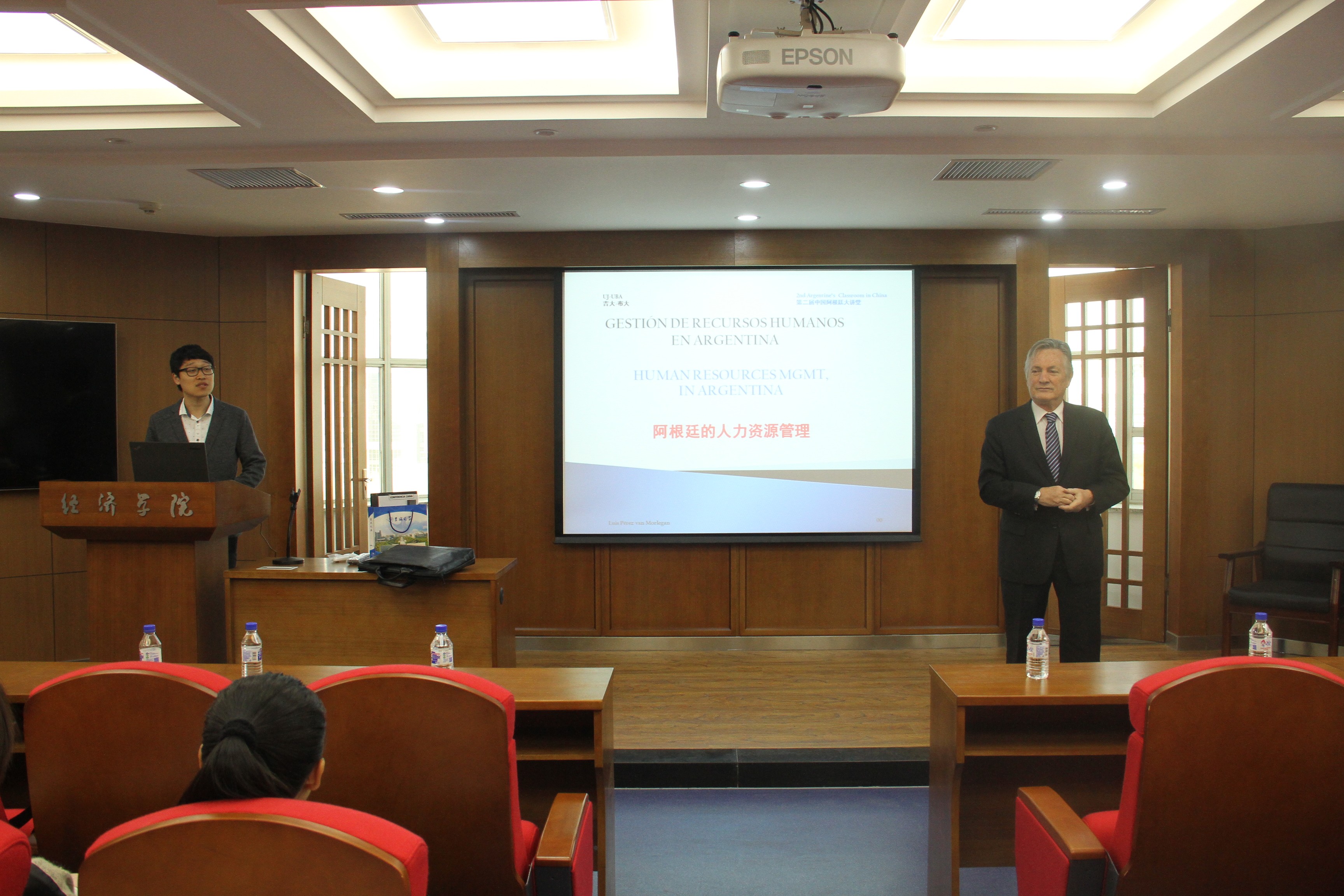 本次阿根廷国际大讲堂由两场学术讲座构成。5月5日上午9:00,布宜诺斯艾利斯大学国际事务处长、人力资源管理硕士项目负责人、布宜诺斯艾利斯大学孔子学院阿方院长Luis Van教授做了一场题为“阿根廷的人力资源管理”的学术讲座。