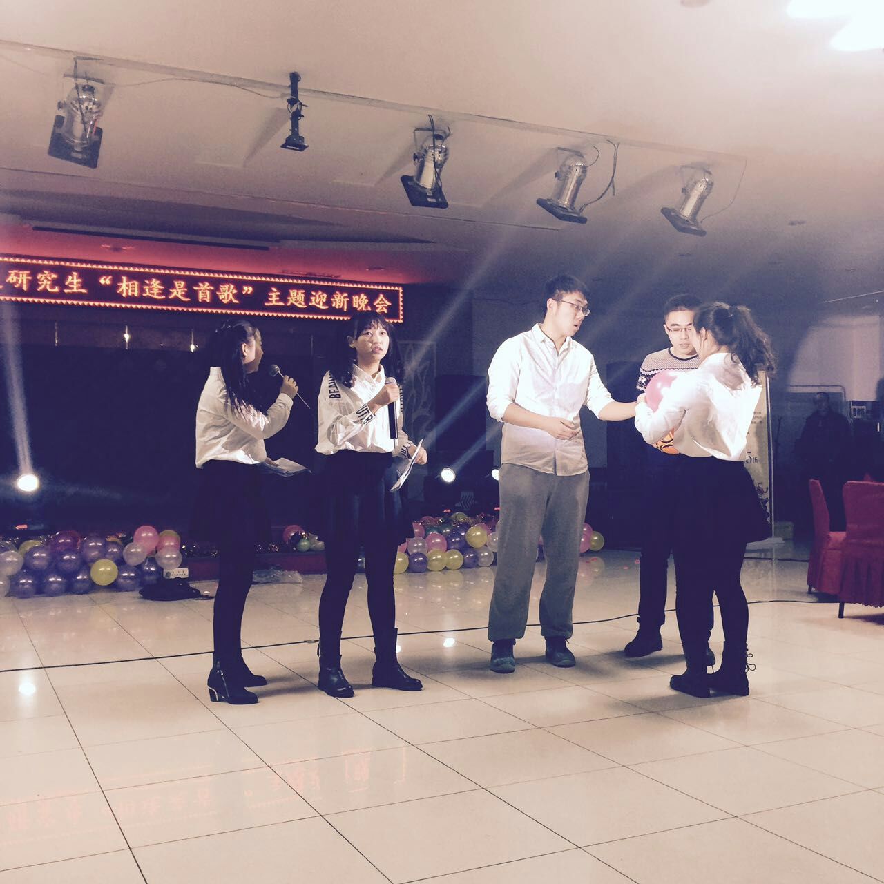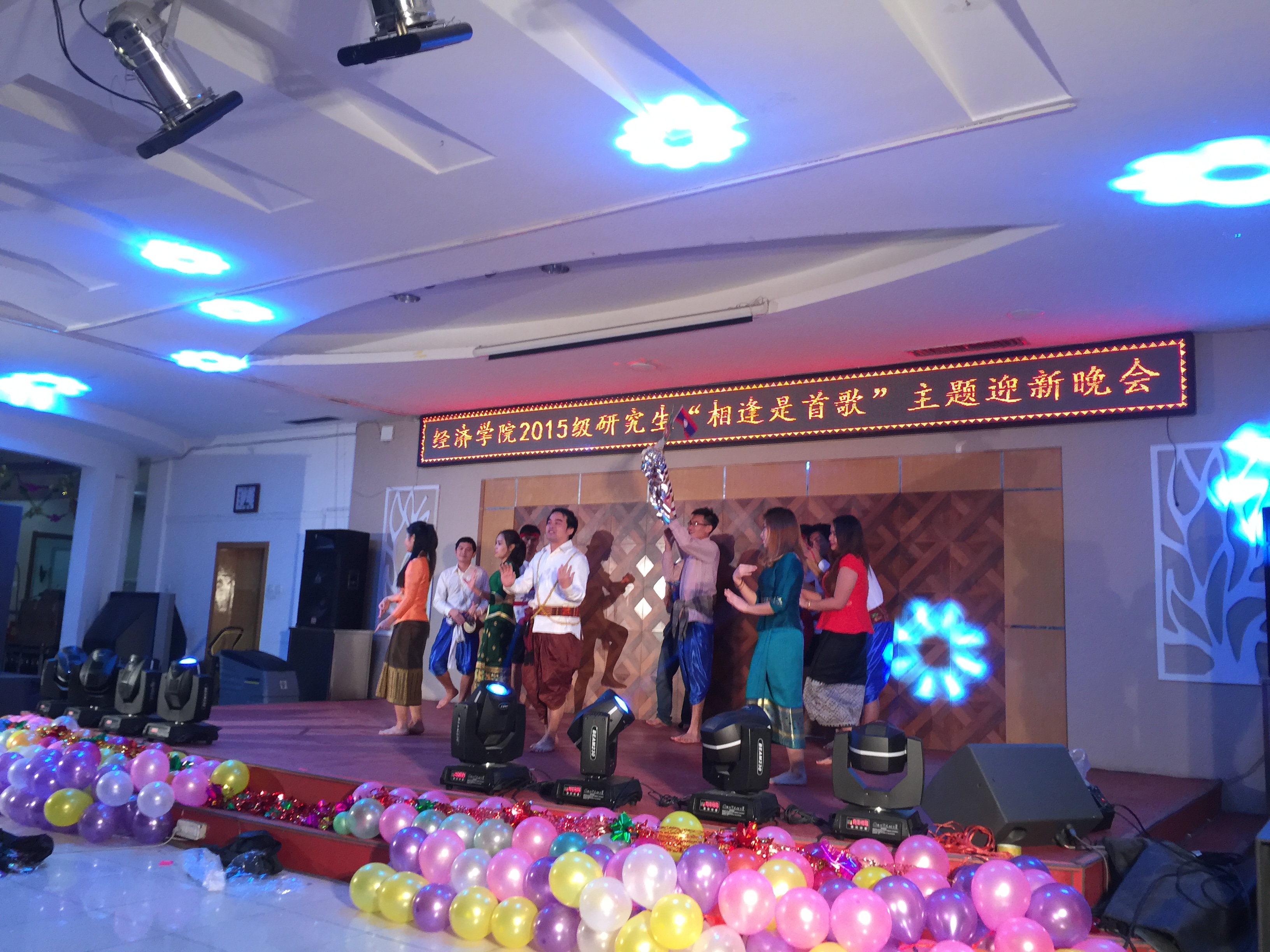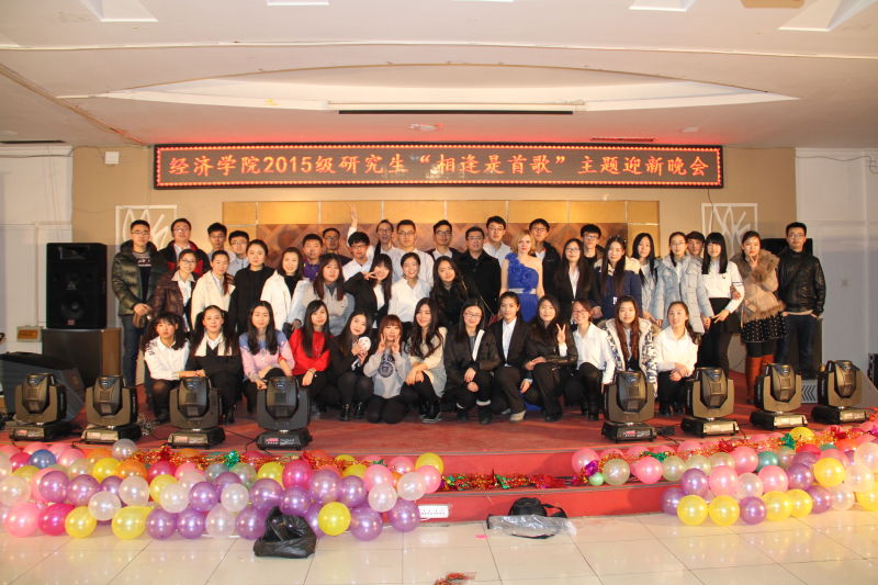 bwin必赢中国官网2015级研究生“相逢是首歌”主题迎新晚会于12月11日晚在莘子园三楼成功举办。bwin必赢中国官网党委副书记张倩老师、经济系赵新宇教授、金融系周佰成教授、外籍教师海森特老师,学院办公室郭薇老师、张坤老师、高杉老师,以及全体2015级研究生和留学生同学共同参加了此次晚会。
