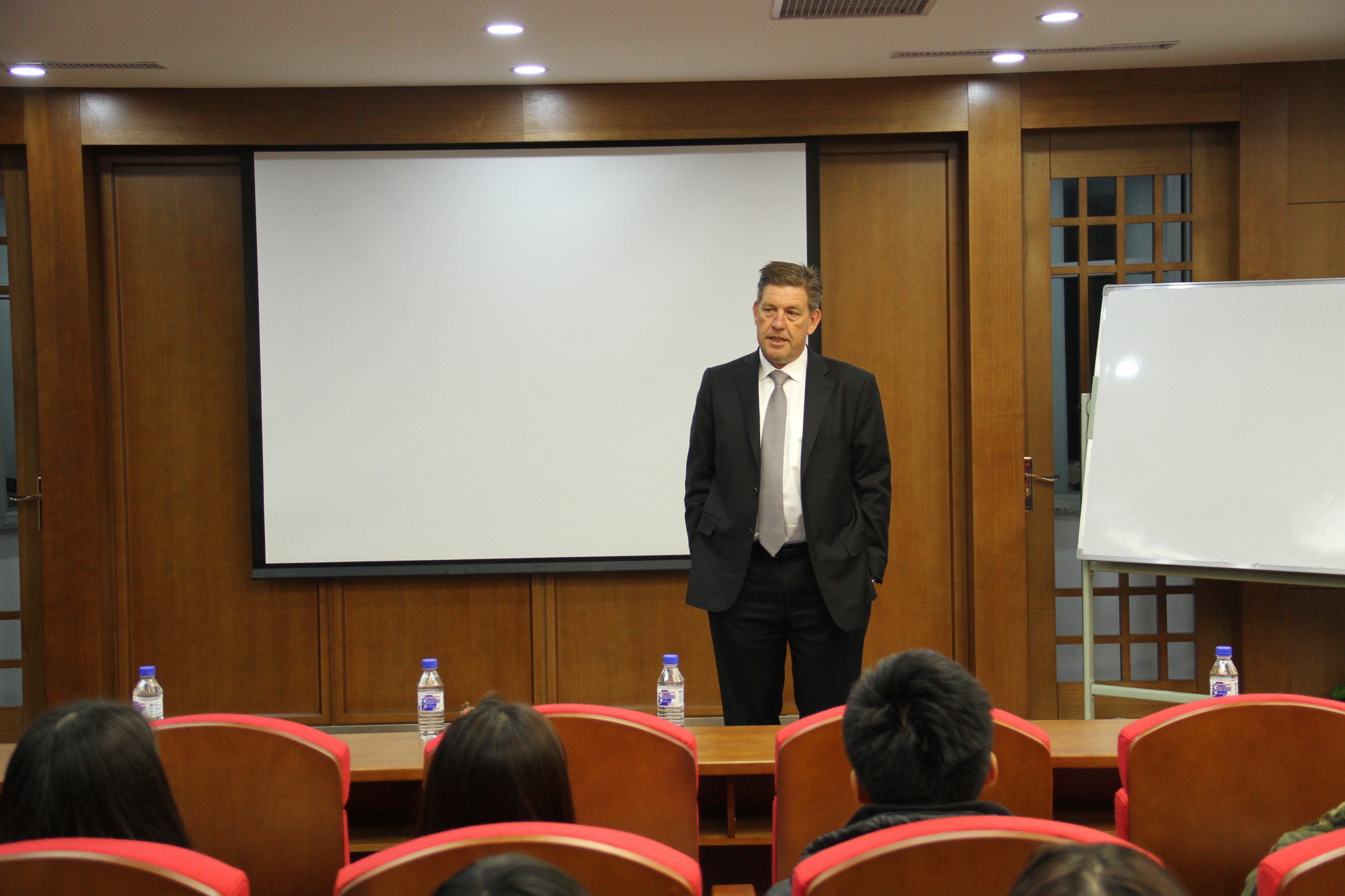 2015年11月11日晚,bwin必赢中国官网在东荣大厦804会议室举行了兼职教授聘任仪式暨“全球资本市场的演进”学术报告会。必赢官网聘任澳新银行澳洲及太平洋金融机构与政府部主管、麦考瑞大学与清华大学荣誉教授ANDREW NEWTON PALMER为兼职教授。出席本次聘任仪式的学院领导和教师有bwin必赢中国官网院长李俊江教授,bwin必赢中国官网金融系主任王倩教授,张虎博士、王皓博士等。聘任仪式及讲座由金融系主任王倩教授主持。