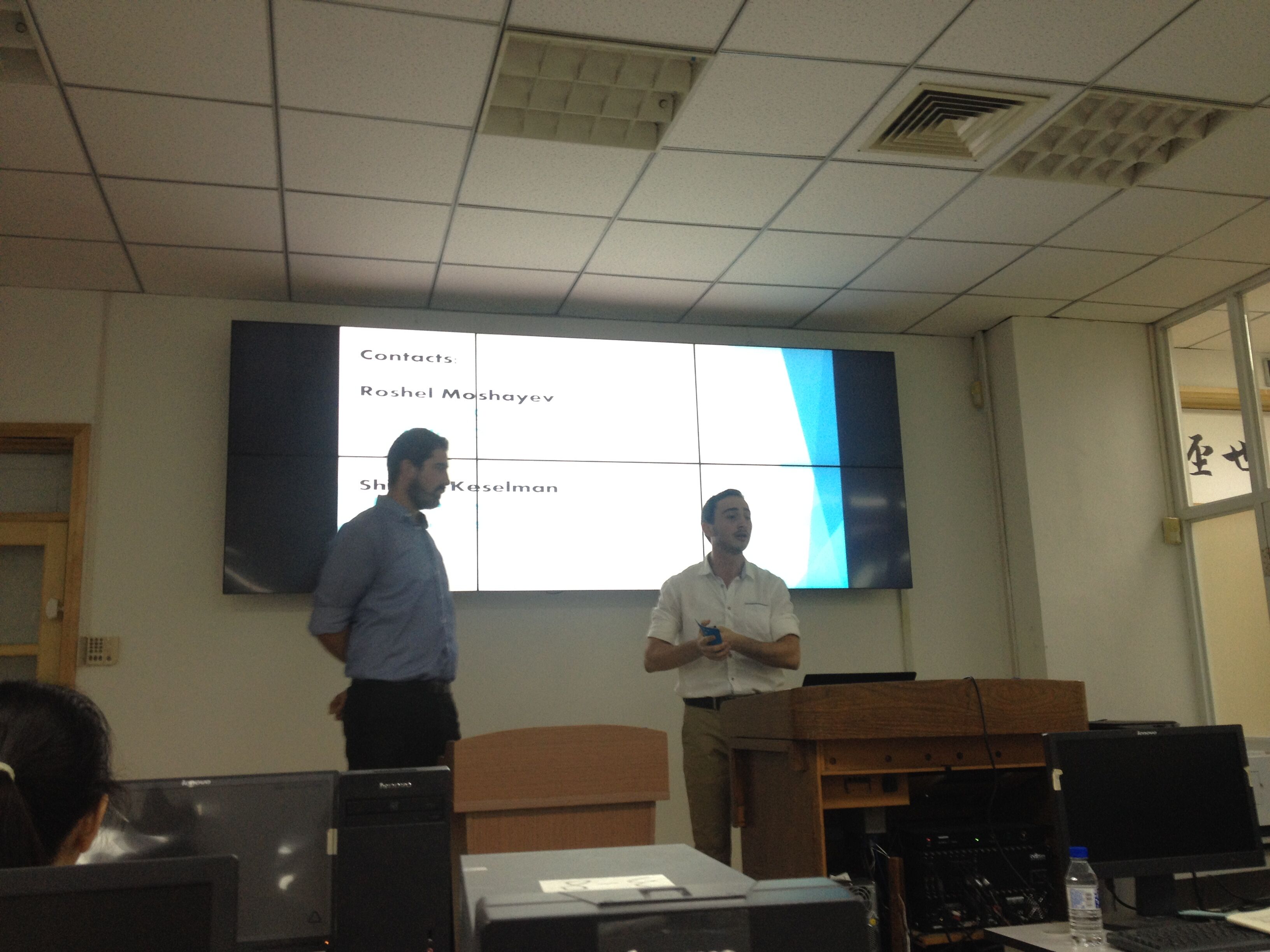 作为以色列青年代表,来自以色列赫兹利亚跨学科研究中心的Shimon Keselman和Roshel Moshayev和大家分享了自己的成长经历。一场关于以色列国情的“快问快答”迅速调动起了大家的积极性。通过他们热情洋溢的讲述,同学们对以色列的移民政策、兵役制度、研发计划、政府政策和民族风格等有了真实而直观的认识。演讲结束后,同学们针对感兴趣的以色列集体农场基布兹(kibbutz)“如何保持犹太民族的特性”等问题和两位以色列青年展开了交流和探讨。
