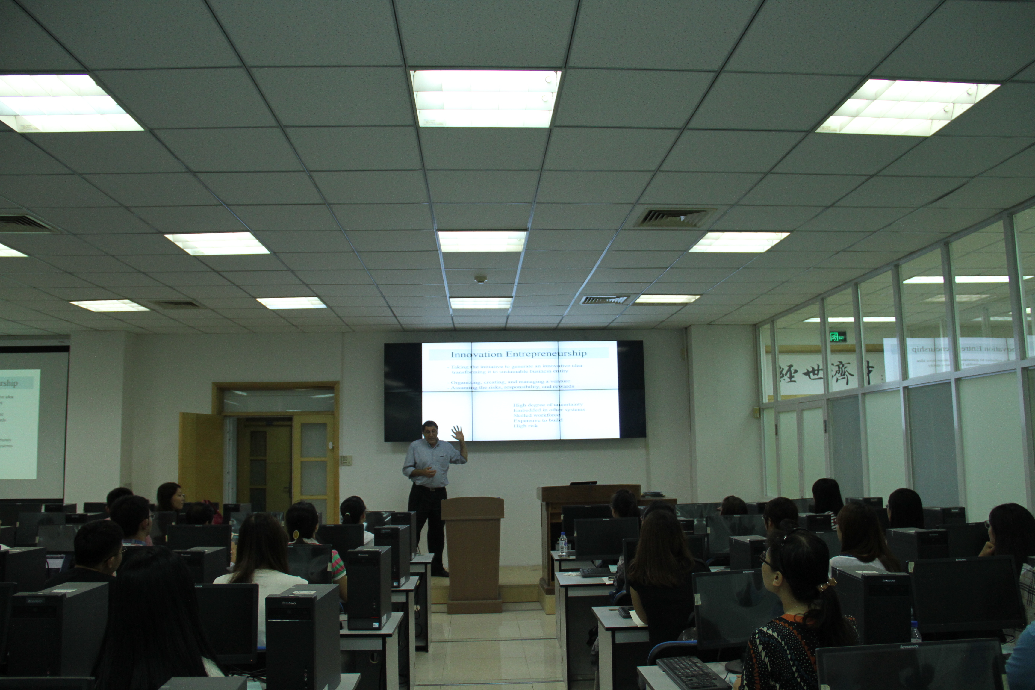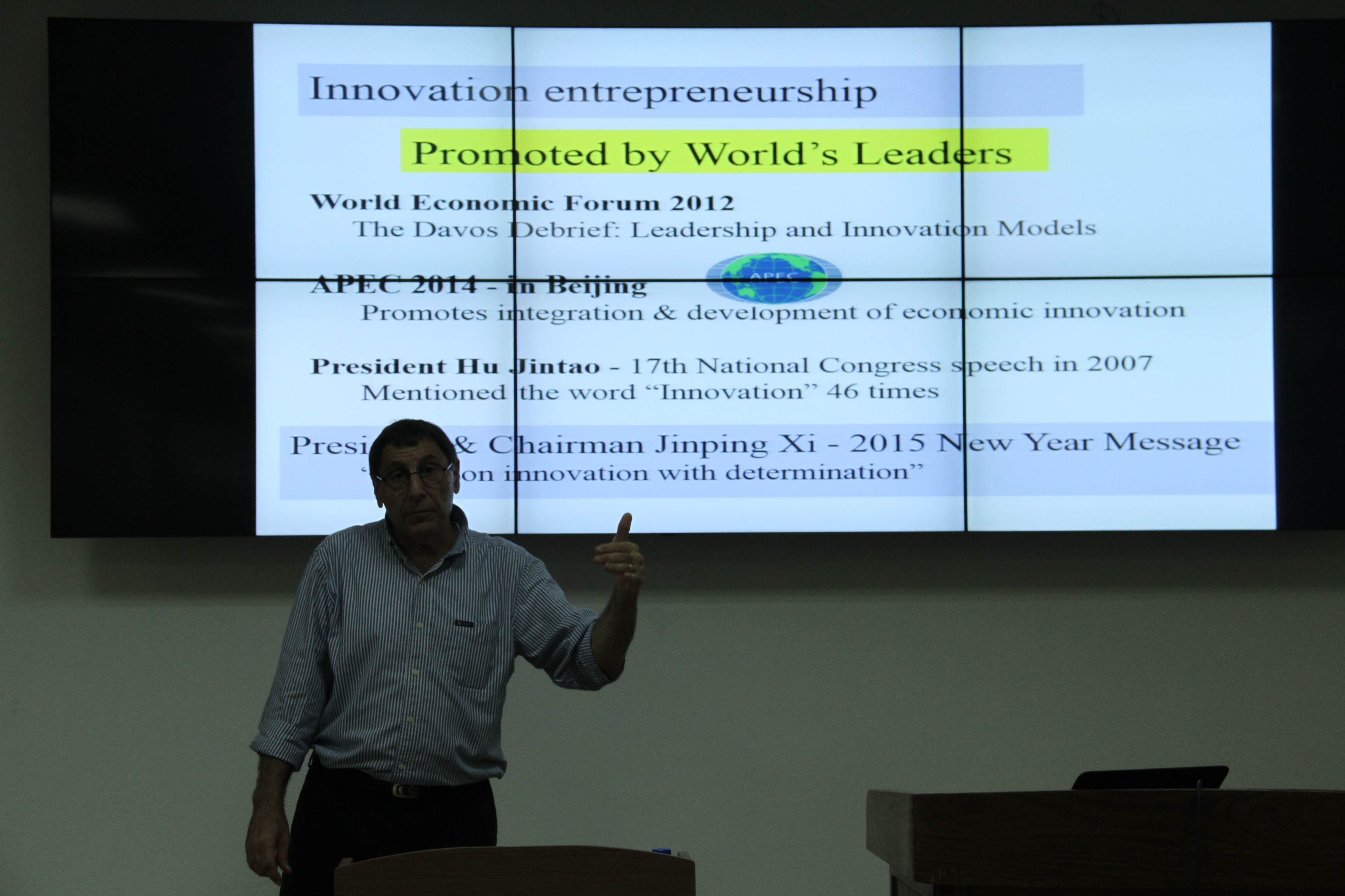 中以创新创业合作研究中心副主任、以色列本•古里安大学约西•达什蒂(Yossi Dashti) 教授远道而来,为bwin必赢中国官网师生作了一场题为“创新型技术创业——以色列成功因素”的精彩讲座。约西•达什蒂教授在演讲中首先强调了中以之间加强在创新创业领域的联系的重要性,他回顾了中以中心的成立,高度认可了bwin必赢中国官网和中以中心举办一系列活动的重要目的和深远意义。从对“创新”、“创业”的内涵和外延认识讲起,他分析了国家官方意识和民间行为,揭示了促进以色列成为创新强国的一系列传统以及非传统的重要因素,进而揭开了以色列迅速腾飞奇迹背后的秘密。结合PPT图片展示,约西•达什蒂教授向大家展示了以色列所面临的恶劣自然环境等不利的外部条件,为在座师生阐述了以色列如何通过科技创新化不利为有利、化腐朽为神奇的发展历史。