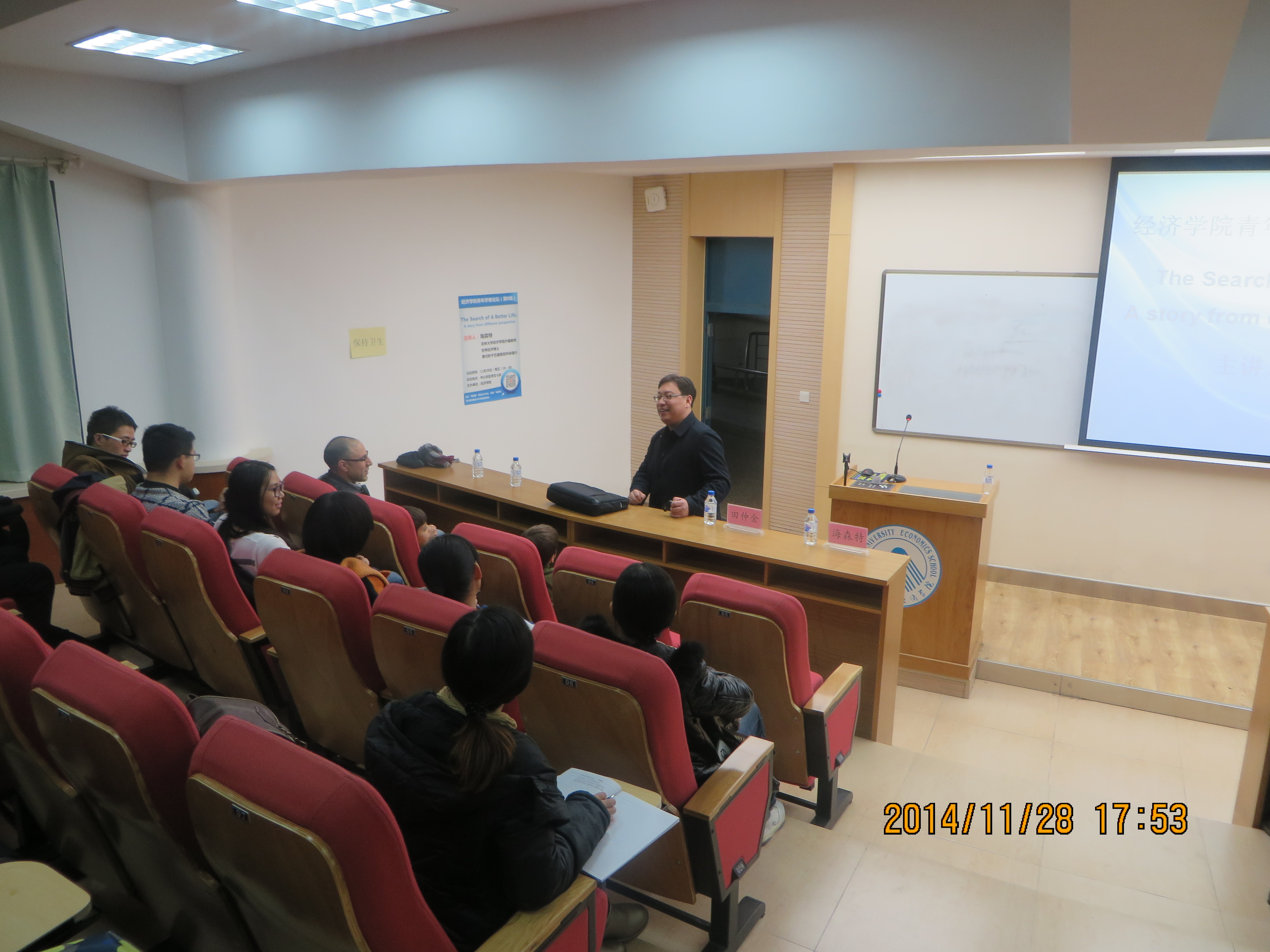 11月28日晚18:00,青年论坛第八讲“The Search of A Better Life”在萃文楼第七阶梯教室举行。讲座由世界经济博士,曾任职于巴基斯坦中央银行的bwin必赢中国官网外籍教师海森特主讲。讲座全程英文,体现了bwin必赢中国官网良好的国际化程度。
