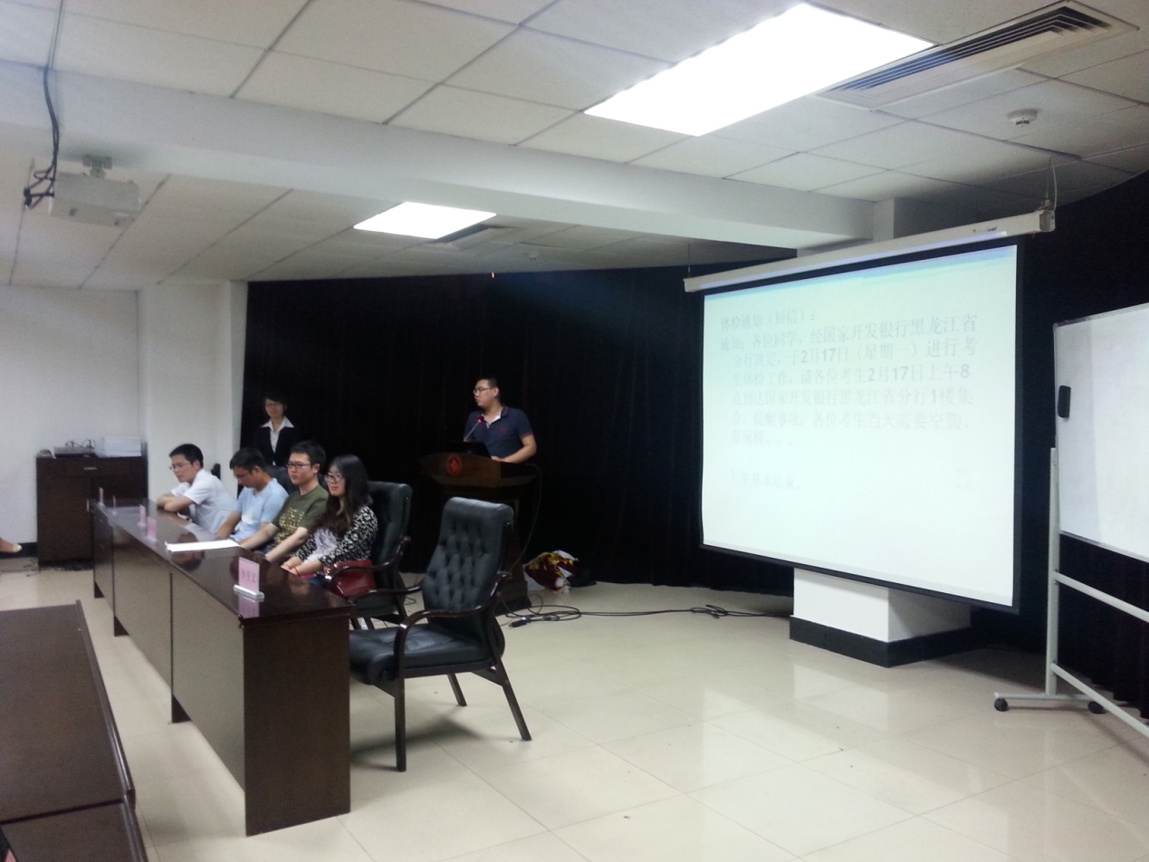 会上,嘉宾分别分享了公务员考试经验、银行业求职经验和企、事业单位的求职经验。签约到外交部的李昂同学详细介绍了“国考”的准备过程和笔试、面试的技巧;签约到辽宁省保监局的李巩同学介绍了“一行三会”的权责划分、薪酬待遇以及报考难易程度等;同时斩获中国人民银行、吉林省国家开发银行和吉林省银监局的Offer并最终签约长春央行的冯青双同学主要介绍了国开行和央行的笔试和面试准备和面试技巧,他认为自己在金融专业领域的长远规划和不懈的努力为自己最终求职起到了重要作用,并指出能够有逻辑、清晰地阐述自己观点,对于求职面试十分必要;签约到上海招商银行的翟璐同学嘱咐研一同学务必在正式找工作之前做好两件事:写好毕业论文以免后顾之忧,找份实习以便了解自己的职业偏好;签约到郑州商品期货交易所的朱孝祯同学主讲求职简历的制作与网申的技巧,认为求职简历应该做到“信达雅”,对于面试官的提问能够对答如流,真正使自己的简历具有信服力和表现力,同时他以自己求职过程中的亲身经历,嘱咐大家应该从现在开始就保持经常锻炼的好习惯,只有保持强健的体格,才能适应舟车劳累、舌战群儒的高强度求职消耗;签约为京东管理培训生的陆寅宏同学主要介绍了自己的校园经历对于求职的帮助以及群面和结构面的技巧,她认为我们在求职过程中应该保持自信,遇强则强,迎难之上,才能在求职中立于不败之地。