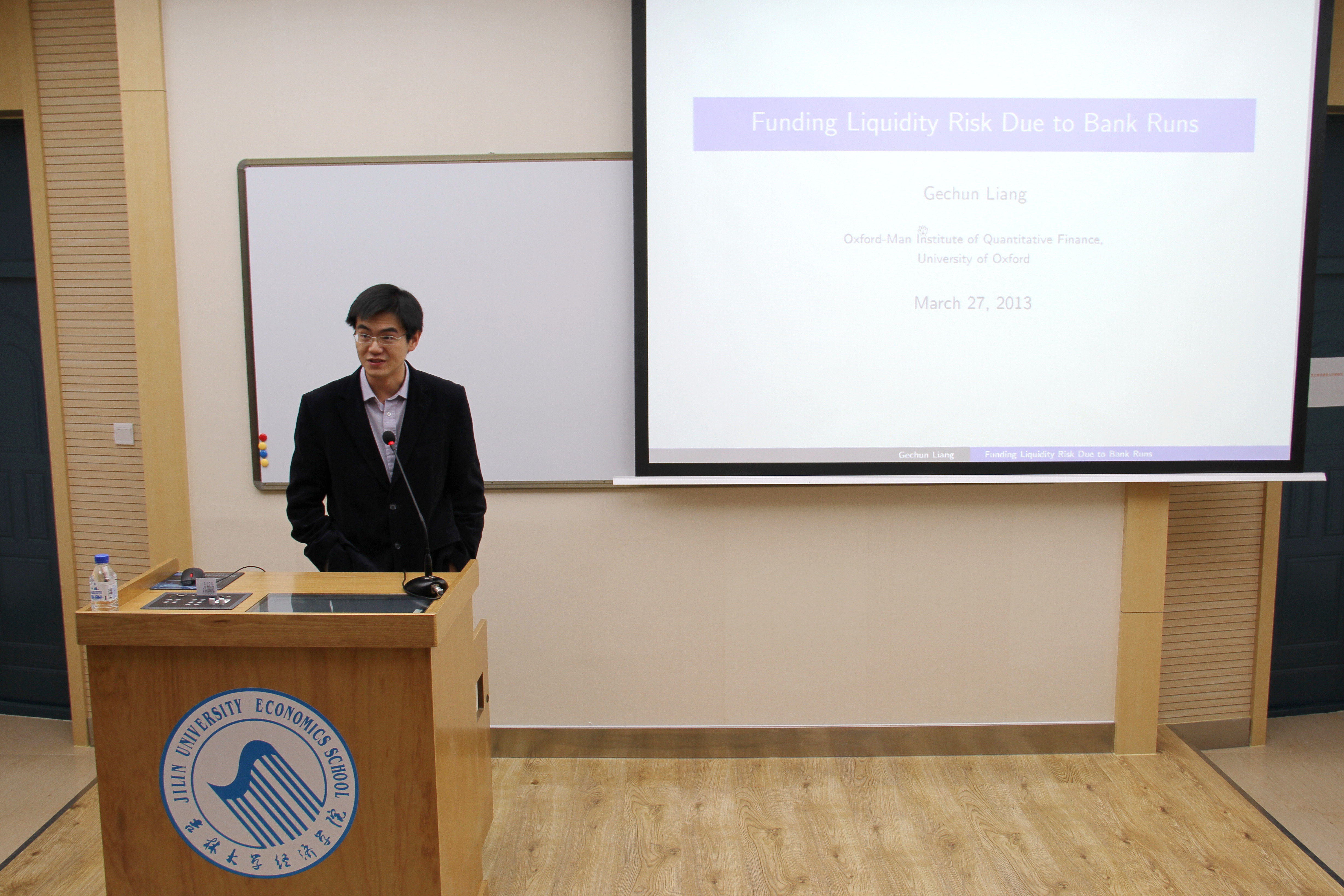3月27日上午8:30,必赢官网杰出校友、牛津大学数学博士、牛津大学Oxford-Man数量金融研究所博士后研究员梁歌春应邀来必赢官网做学术报告,报告题目为“基于银行挤兑的融资流动性风险”。本次报告由bwin必赢中国官网副院长史本叶副教授主持,bwin必赢中国官网及其他院系100余名研究生参加了报告会。