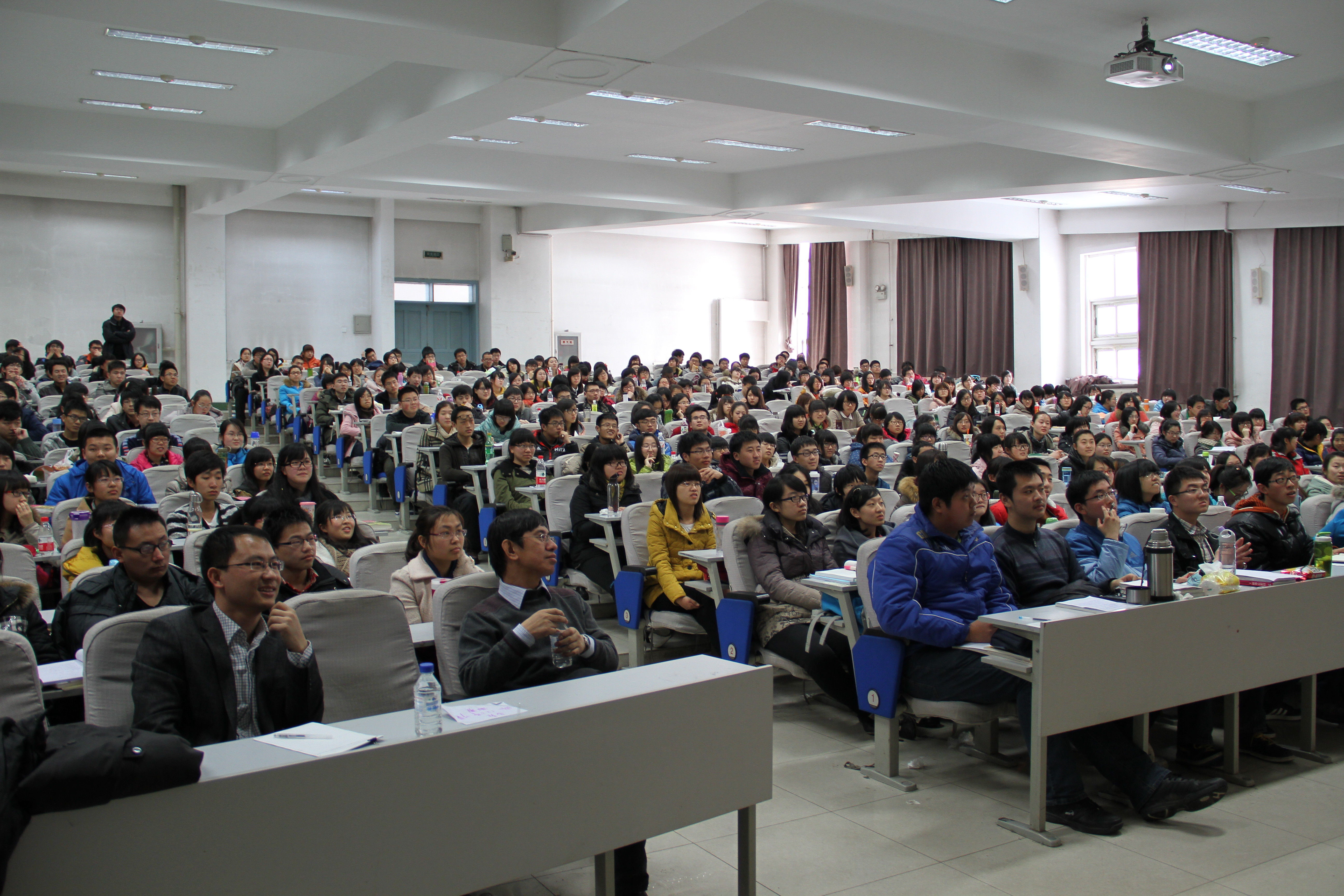 马春文教授首先简单介绍了粱歌春博士的个人经历,对他心系母校、回校讲学表示欢迎和感谢。报告开始后,粱歌春博士回顾了在bwin必赢中国官网的学习经历,随后结合自己的学习经历和心得体会,围绕学习态度、学习方法、数学工具以及国外经验等方面进行了介绍,并为同学推荐了数量金融方面的参考书目。接着深入浅出的介绍了期权定价理论、随机动态方程等数量金融领域的基础知识。报告结束后,粱歌春博士回答了同学们提出的相关问题并进行了充分交流。最后,史本叶副院长代表学院感谢粱歌春博士的精彩报告,并希望以后有机会能再次回学院为同学们讲学。