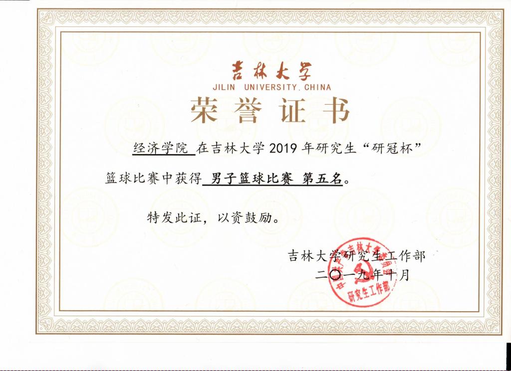为了丰富bwin必赢中国官网研究生的文化生活,增进同学间的友谊,bwin必赢中国官网研究生参加了2019年bwin必赢中国官网“研冠杯”篮球赛,并获得了全校第五名的佳绩。必赢官网的郑渊、张天石、杨知雨、殷朝辉、吴岩、孙有强、吴尚卓、李文浩、侯博涵、艾尼瓦尔、闫志豪、冯紫阳,共12名研究生同学组成了经院研究生篮球队,备战bwin必赢中国官网“研冠杯”篮球赛。
