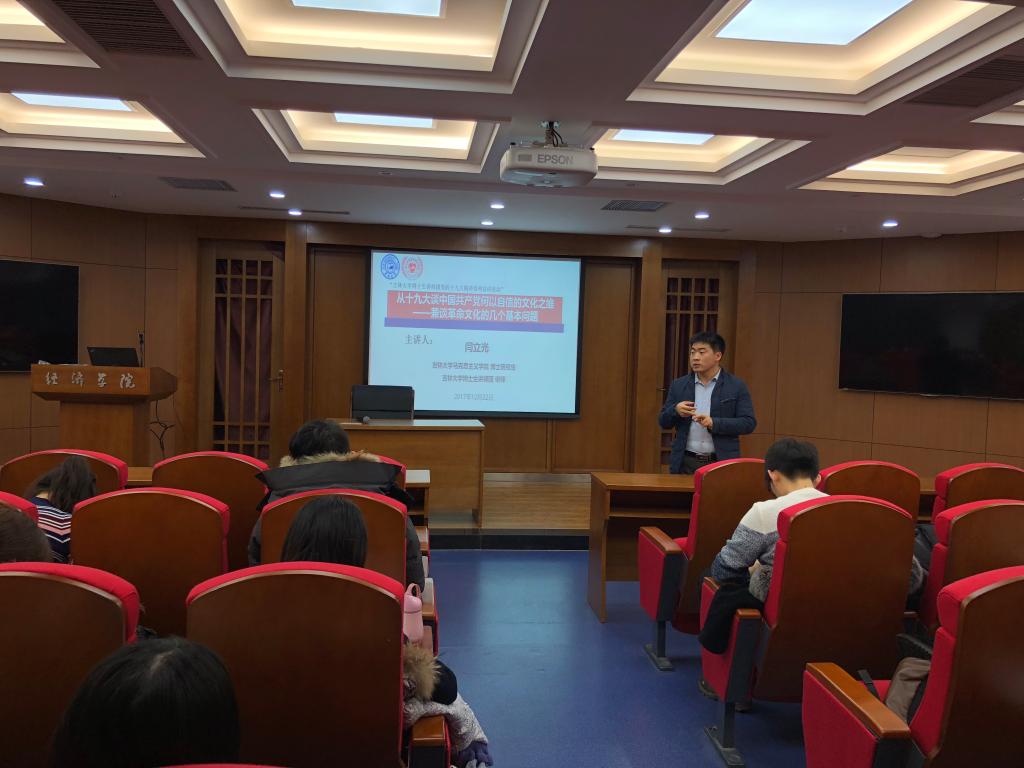 12月22日博士生讲师团本次走进bwin必赢中国官网,开展解读宣传十九大精神的活动。担任本次活动的讲师为来自bwin必赢中国官网马克思主义学院的博士研究生闫立光。