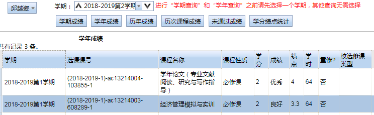 邱越姿同学经济管理模拟与实训课程成绩已录入系统,成绩为良好,转换为85分。