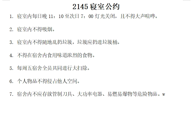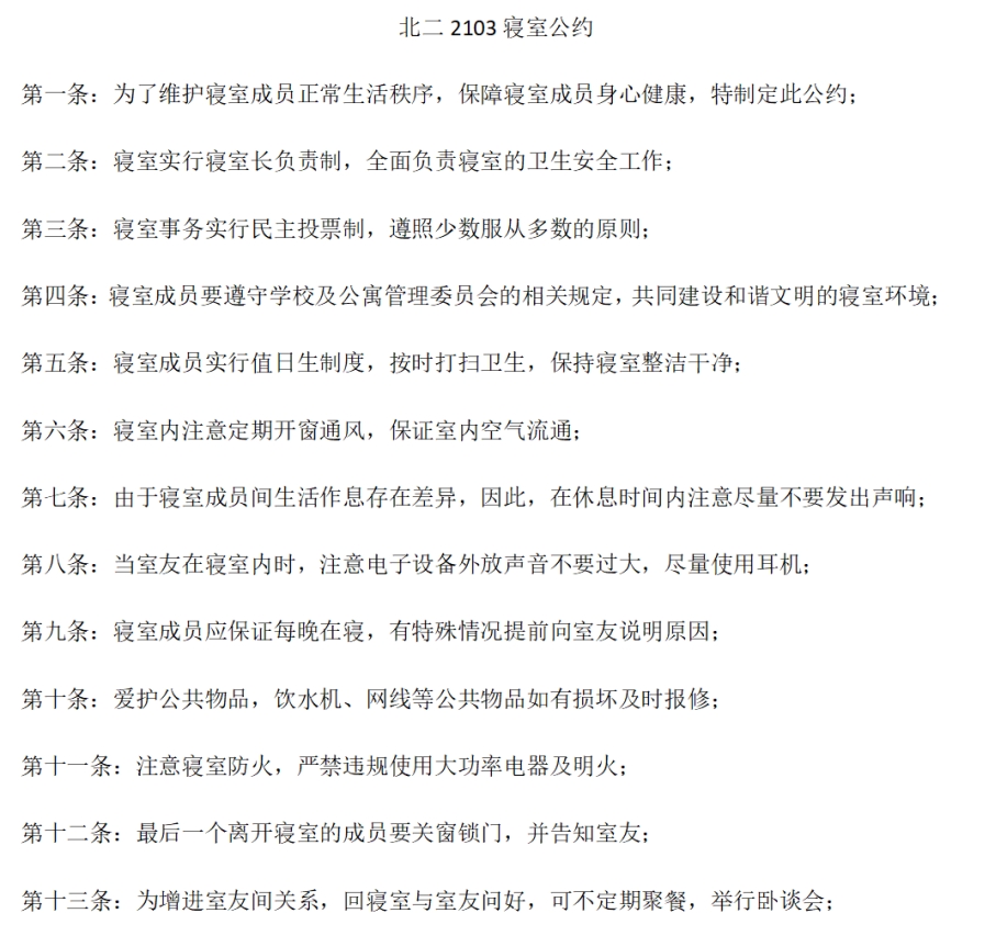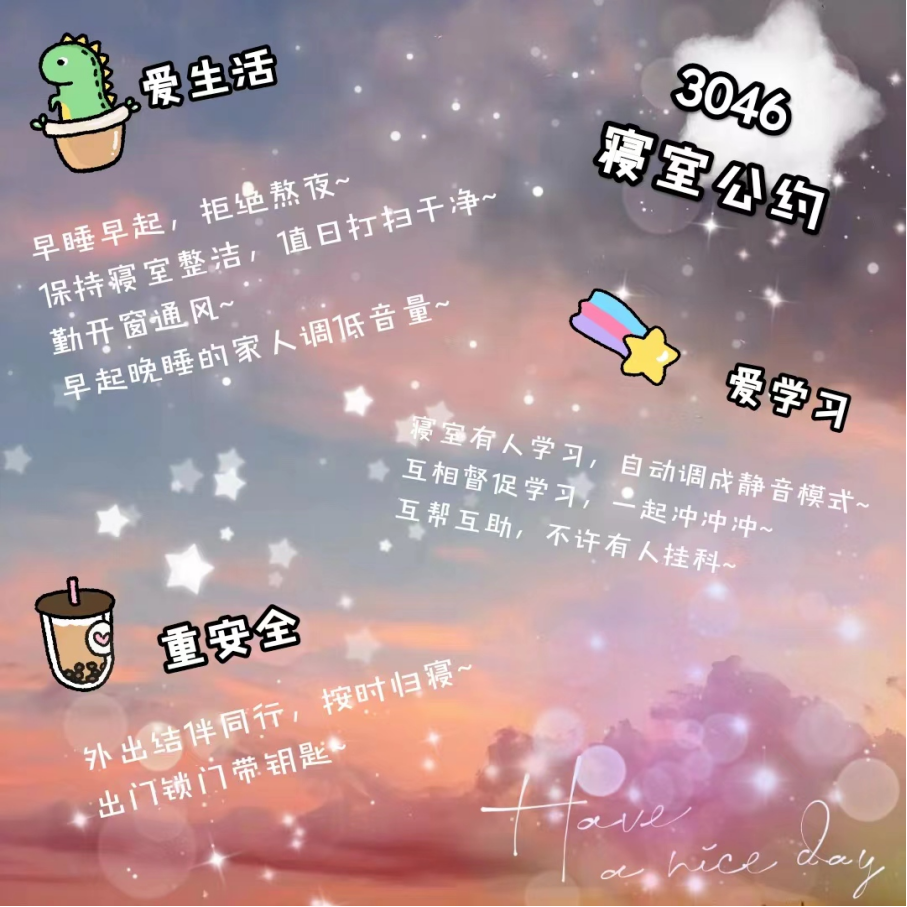bwin必赢中国官网2022级寝室公约活动优秀公约展示(三)