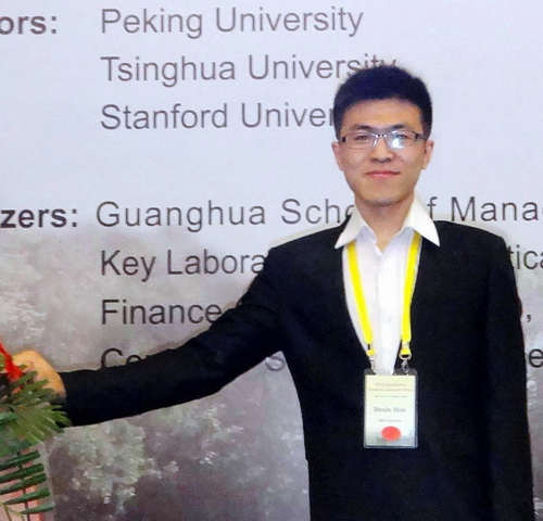 课余时间他热衷于论文写作并广泛参与学术活动,曾在CSSCI期刊、省级核心期刊、国际期刊公开发表论文“我国民间金融合法化路径展望”、“Impact Of Social Ideology Produce On Economic Growth”、“城市商业银行流动性风险管理创新”等5篇,收录于万方、知网等数据库,参加会议论文等(未发表论文)共7篇,作为项目负责人,主持“大学生创新创业训练计划”创新训练项目《中国能源衍生品交易机制研究》主持项目答辩与论文撰写,并负责Matlab编程对点火价差期权定价;参与王倩老师项目《能源产业与经济增长的关联性分析》从NYMEX、PJM、SFE查询能源价格现货、衍生品价格数据,并将他主持的大创项目作为其子项目;参与何彬老师项目《中国经济发展贸易增长和FDI流入的环境影响效应分析与检验》;他的论文“季节调整的FDI状态空间模型”经层层选拔,最终入选并代表学校参加“2013年第三届全国本科生经济学年会”(bwin必赢中国官网仅他一人),会上与来自各大顶尖高校的老师与学生进行论文分享答辩,论文收录于会议文集(22篇/465篇)、他参加由北京大学、清华大学、斯坦福大学主办的“北京大学-清华大学-斯坦福大学数量金融国际会议”,倾听陈松蹊、陈小群、朱英姿等教授介绍数量金融领域前沿研究成果、“第14届《决策模拟》教学研讨会”等三场学术会议,作为学生代表对当前最新的决策模拟教学软件进行模拟操作测试演练,并在会上针对决策模拟软件的操作流程设计问题提出自己看法。他痴迷于对金融数学、衍生品定价(电力期权、天燃气衍生品、天气衍生品)、能源金融学、Chaos等领域的研究与热爱。