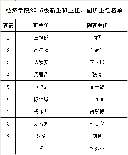 bwin必赢中国官网2016级新生班主任、副班主任名单公示